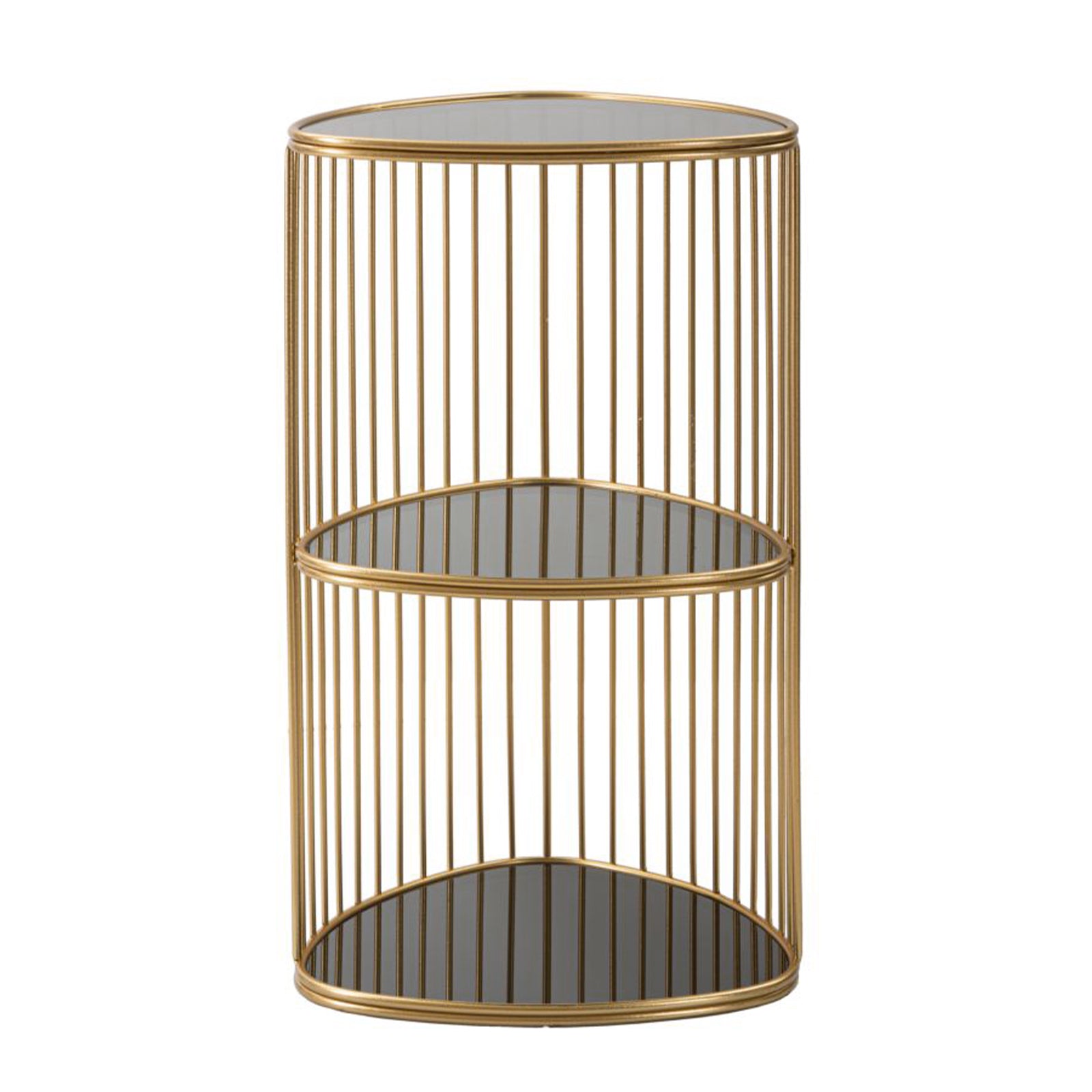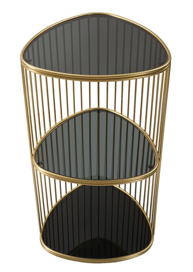 La sua struttura è realizzata in metallo, garantendo robustezza e durabilità, mentre i ripiani sono in vetro, aggiungendo un tocco di eleganza e leggerezza visiva all'insieme.