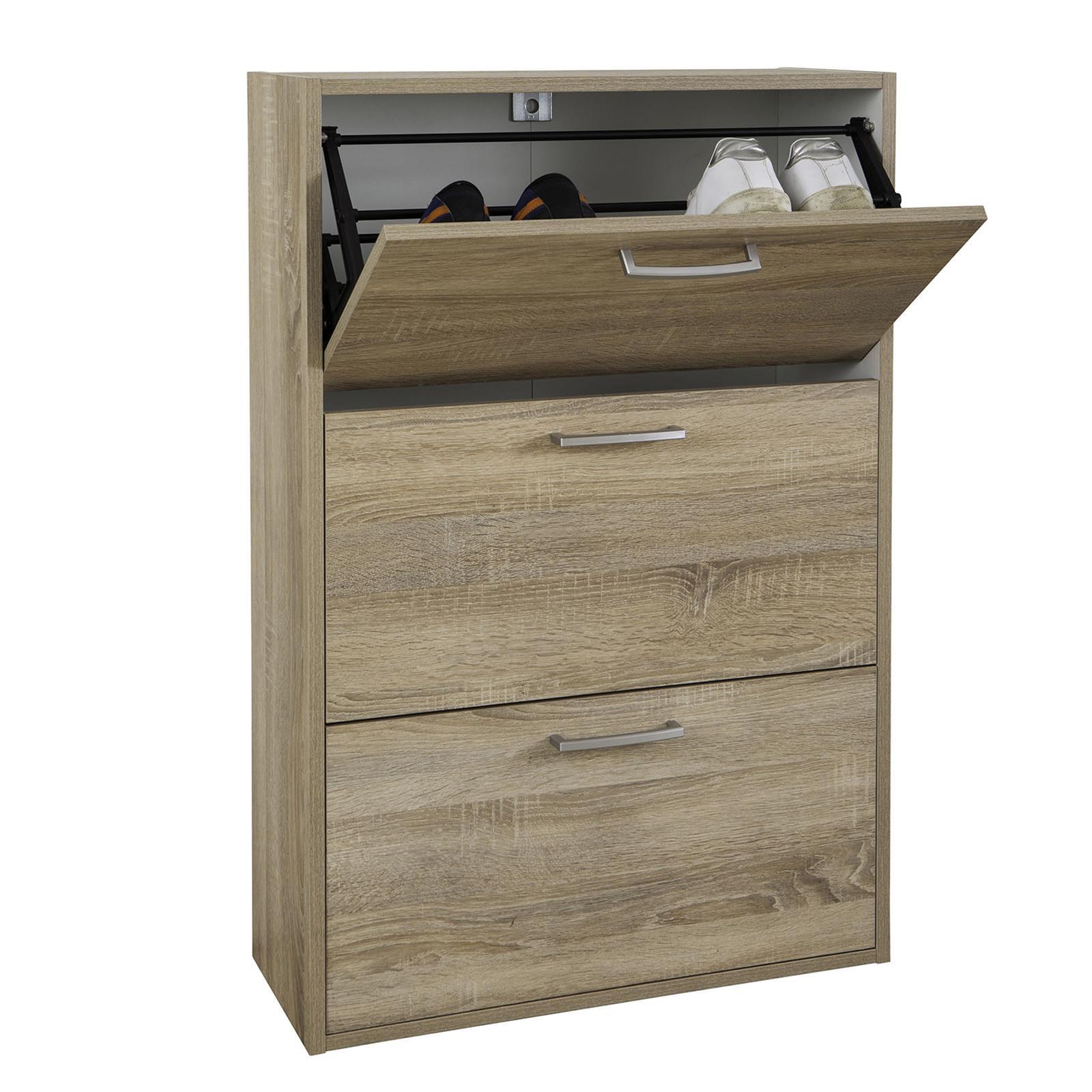 Questa moderna scarpiera salva-spazio rispetta l'ambiente in quanto realizzata esclusivamente con pannelli ecologici in legno riciclato.