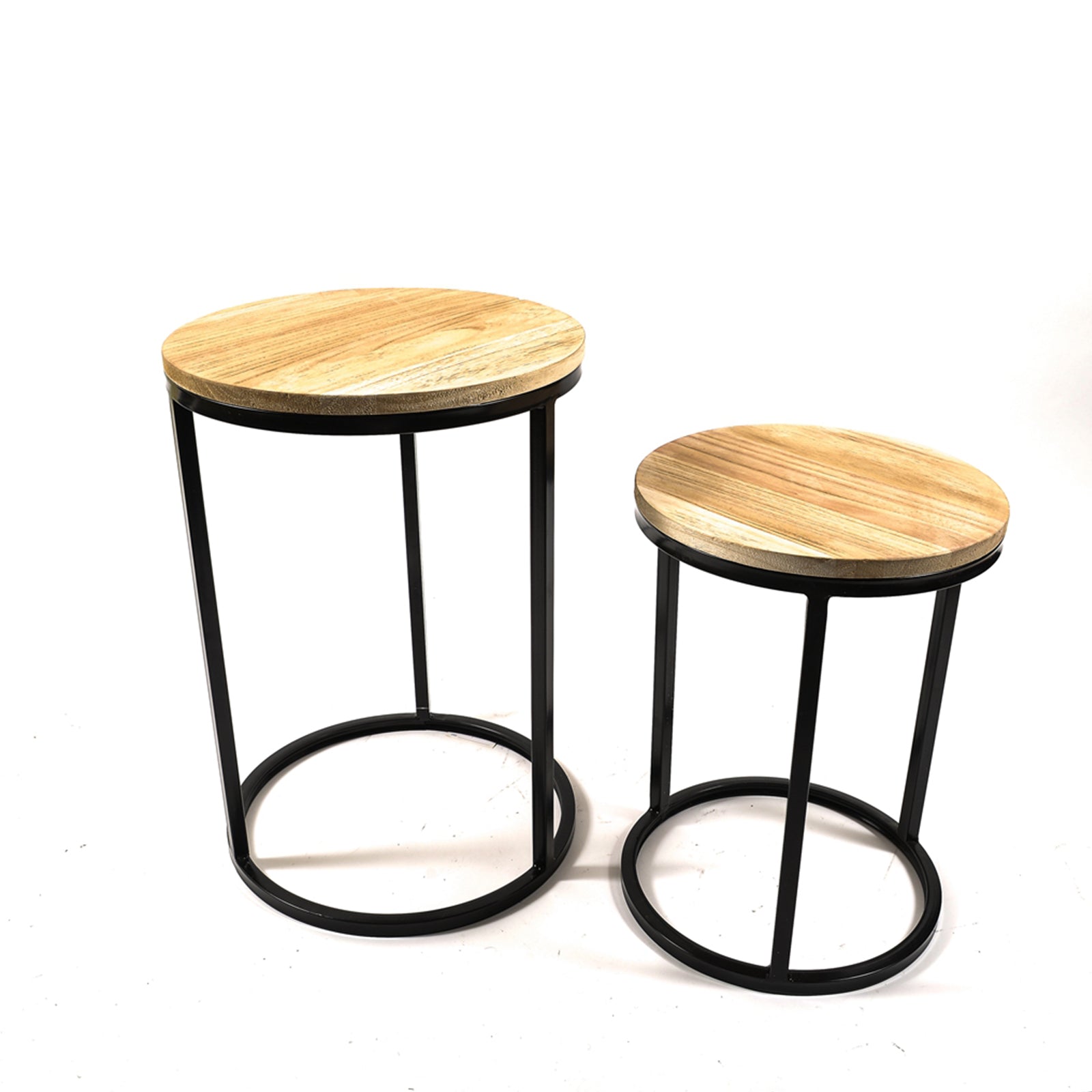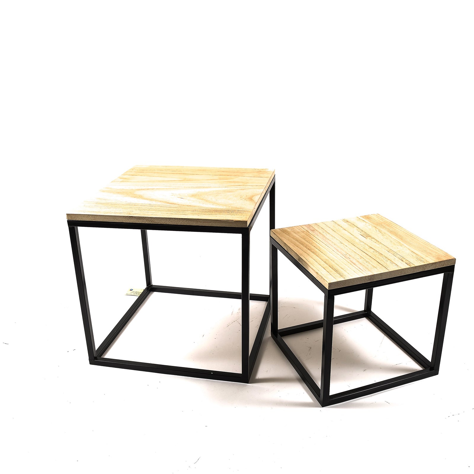 Set 2 Tavolini in metallo e Legno per arredamento interno ed esterno