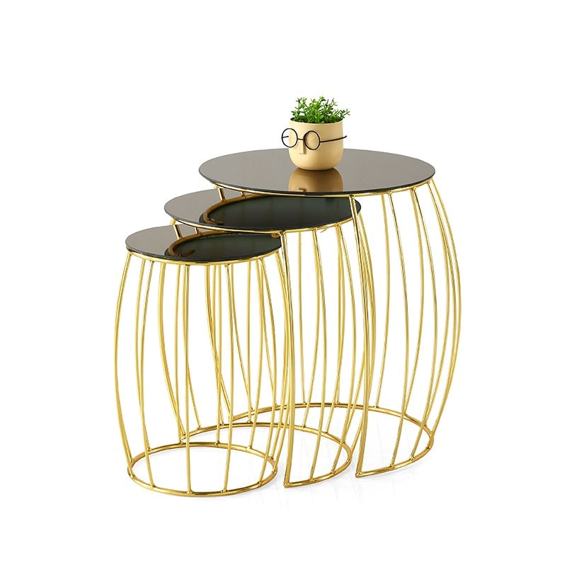 Set 3 Tavolini da salotto moderno in metallo con piano in vetro