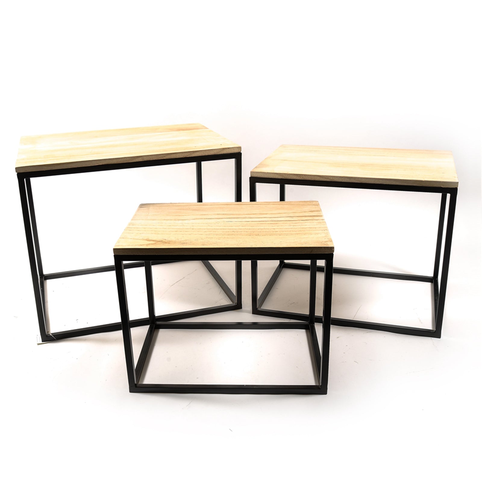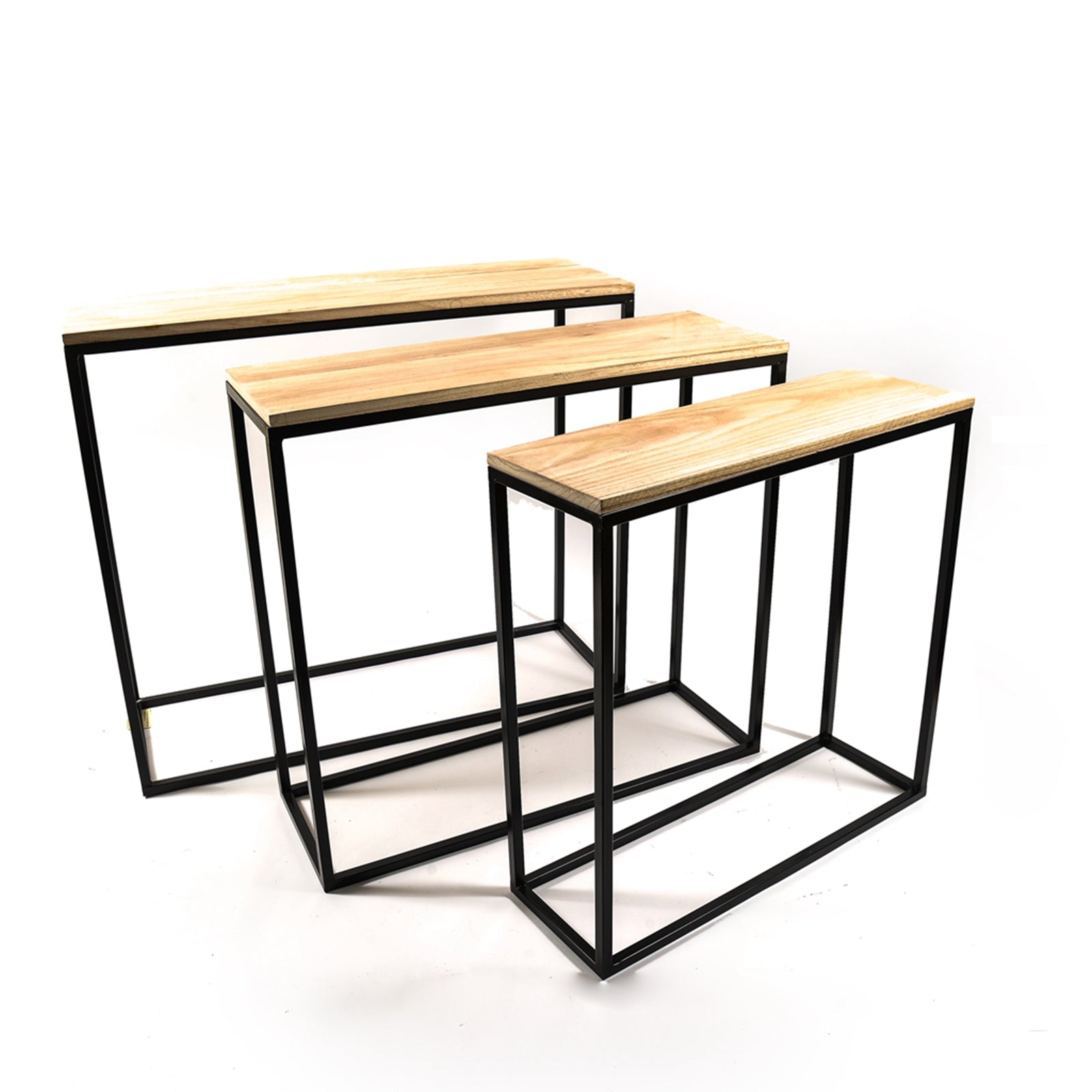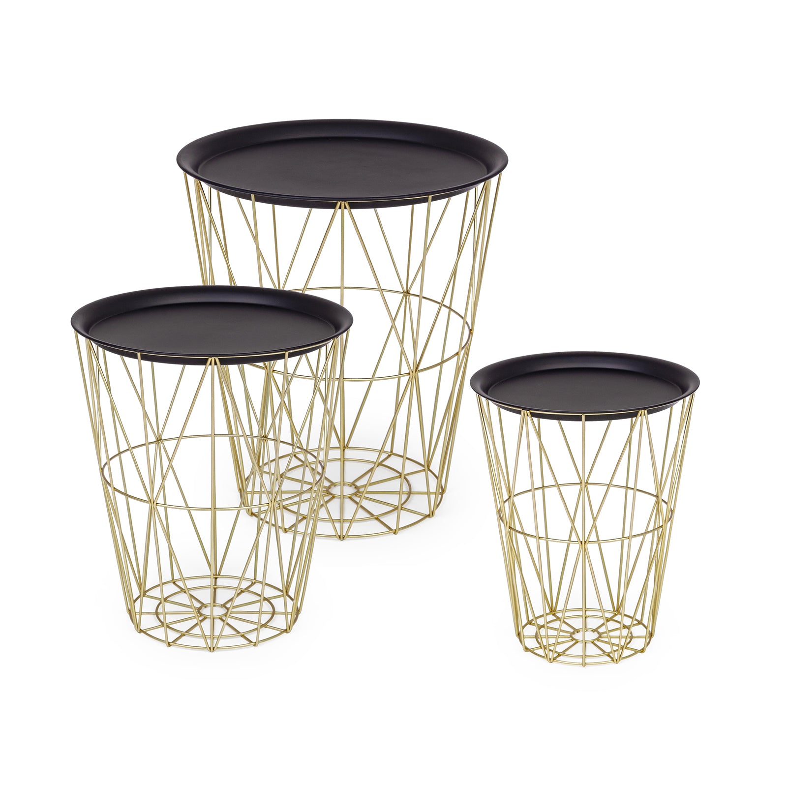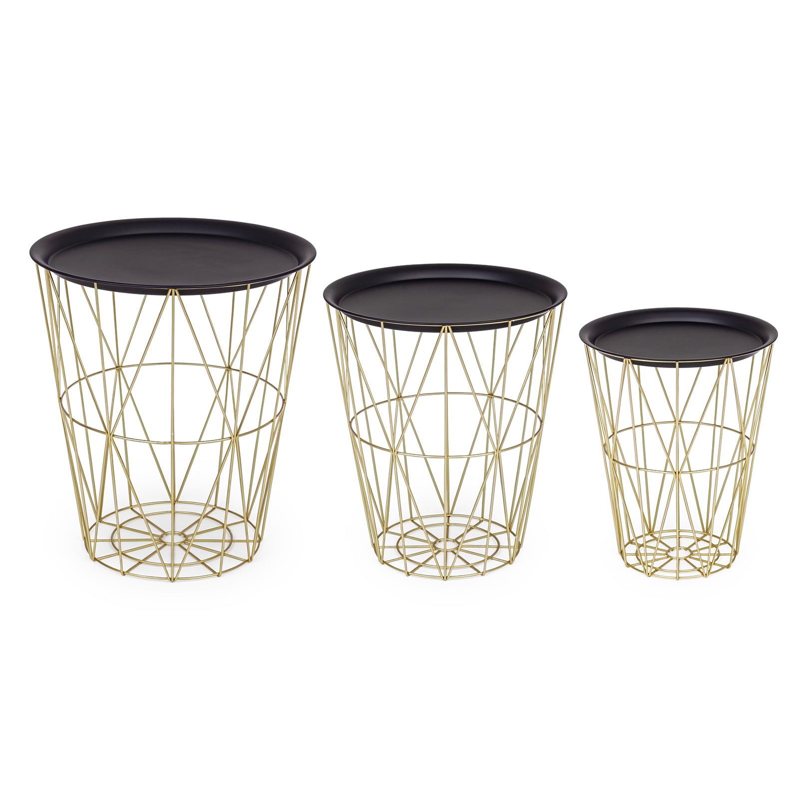 Il Set 3 Tavolini esagonali da salotto moderno in metallo è composto da tre tavolini di diverse dimensioni, caratterizzati da un design essenziale e contemporaneo.