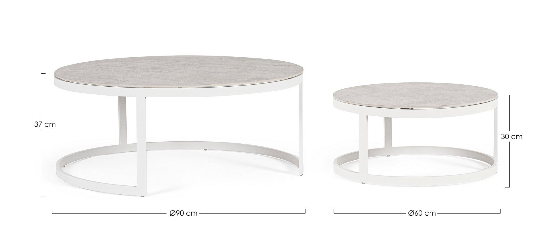 Tutti i tavolini sono realizzati in metallo e garantiscono robustezza e resistenza, oltre ad una facile manutenzione.