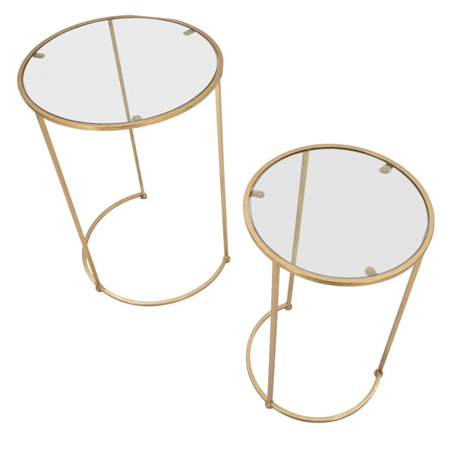 Tavolinetti struttura in ferro color oro ripiano in vetro per interni set da 2