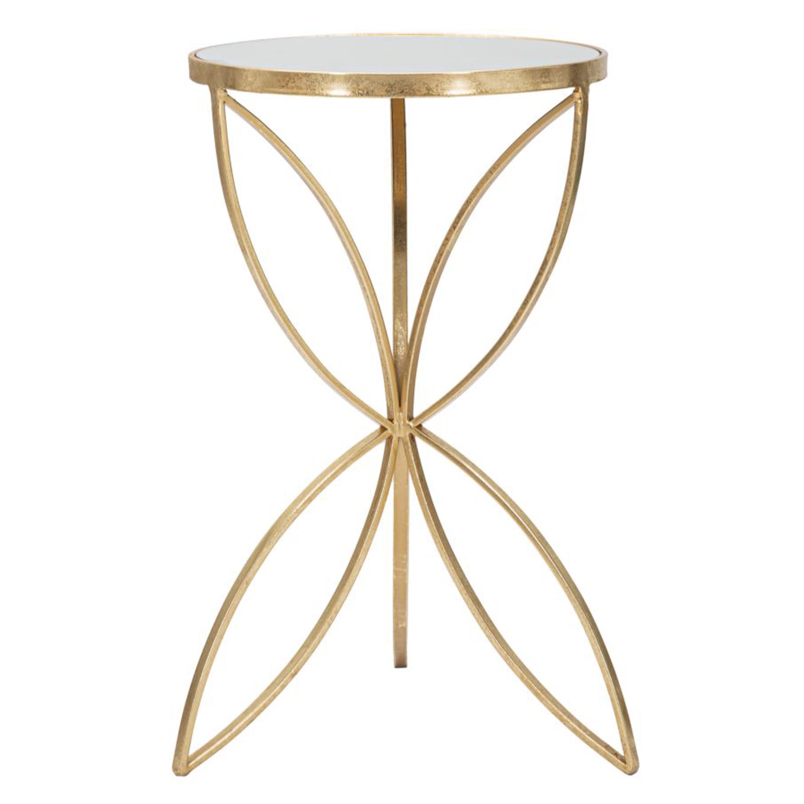 Tavolinetto "Butterfly" struttura in metallo color oro ripiano in vetro per interni