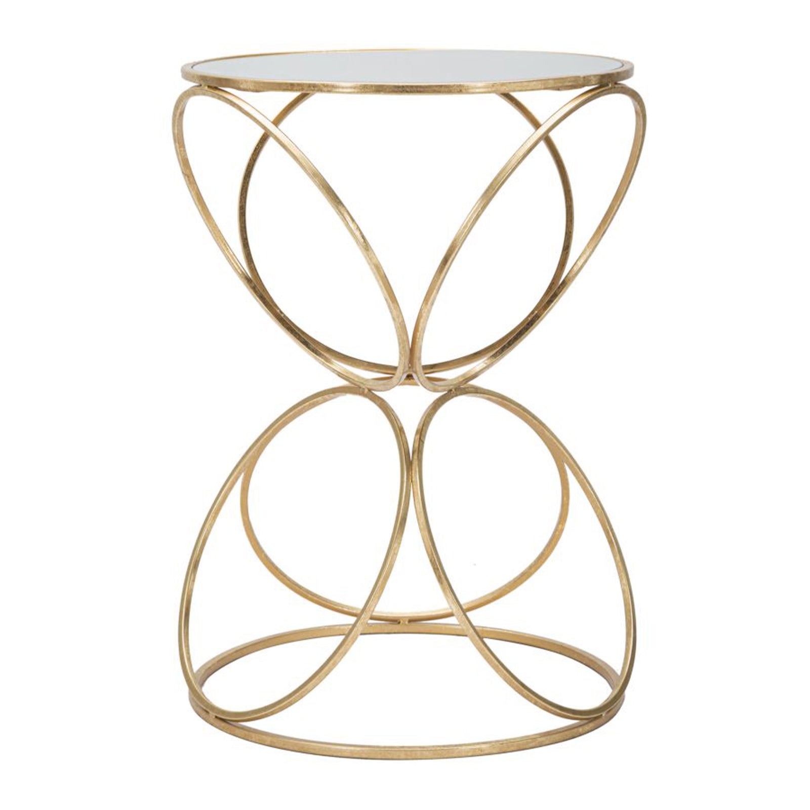 La struttura del tavolinetto è realizzata in metallo color oro, fornendo un aspetto lussuoso e raffinato.