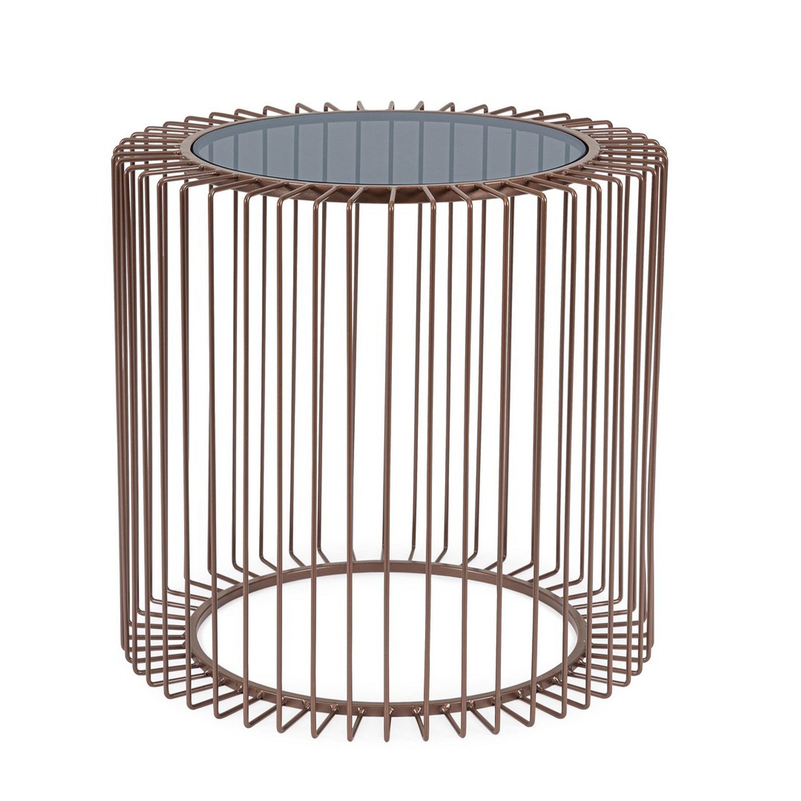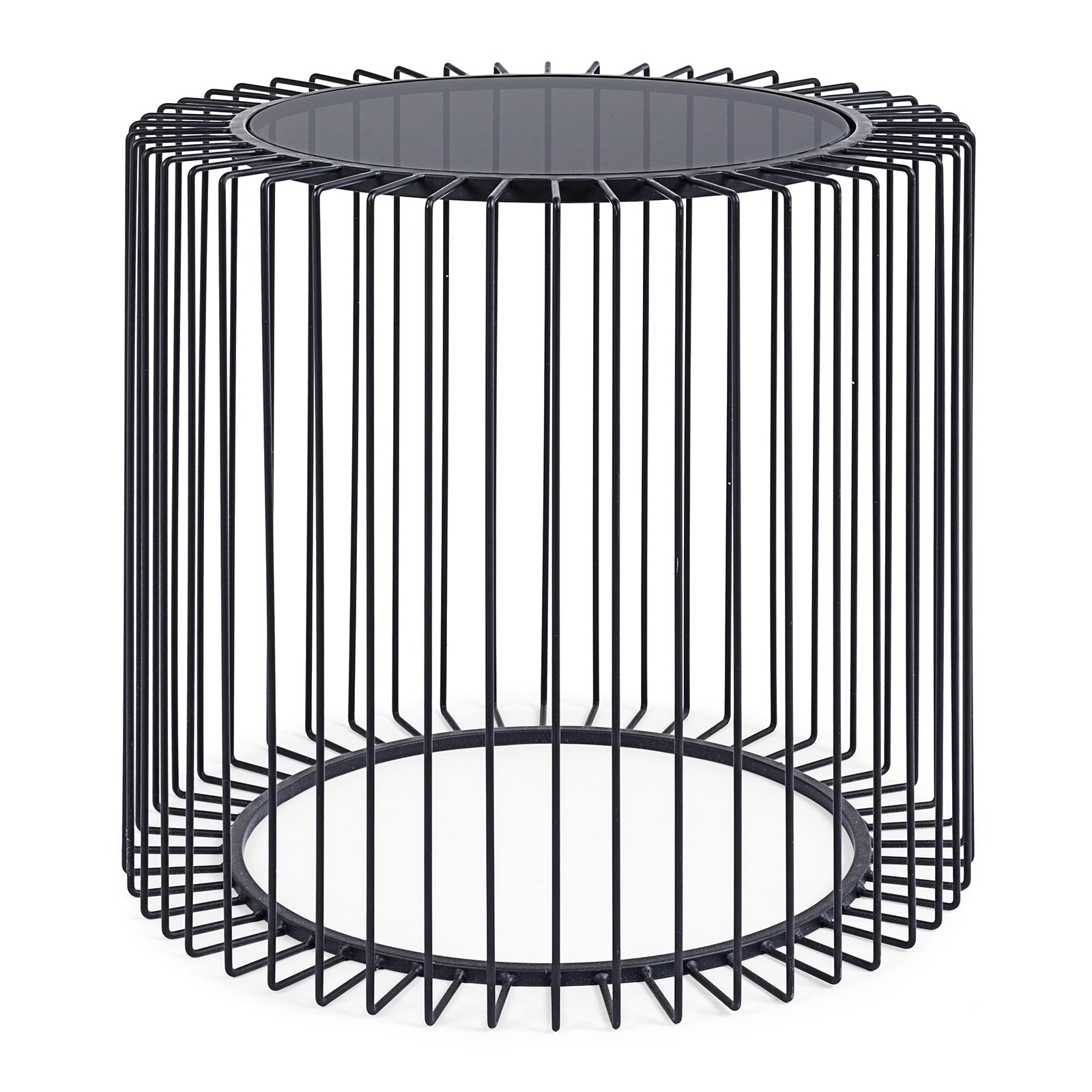 La struttura in metallo, robusta e stabile, contrasta piacevolmente con la trasparenza del vetro, aggiungendo un tocco di modernità e raffinatezza al design complessivo.