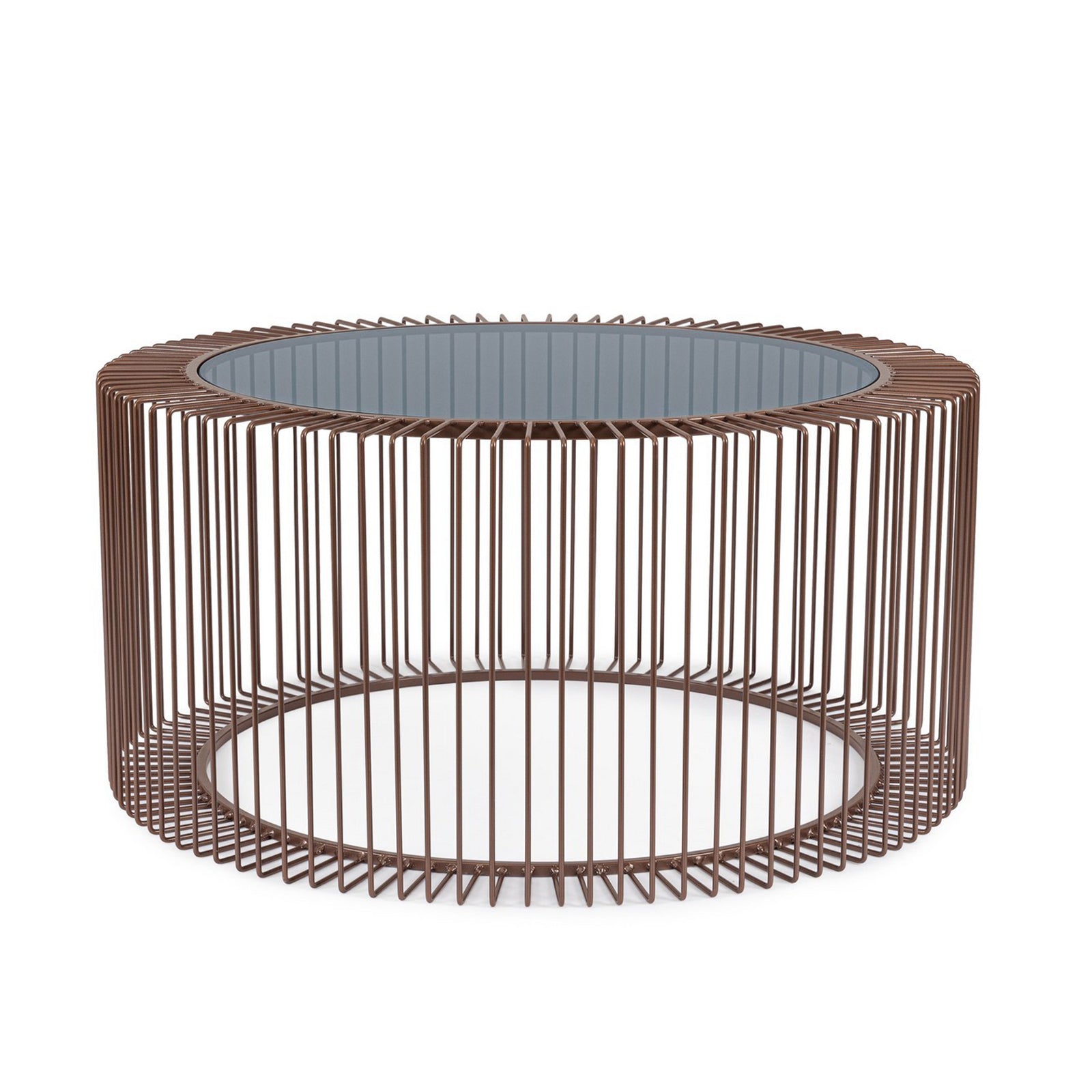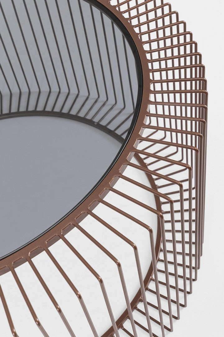 Il piano in vetro trasparente conferisce al tavolino una sensazione di leggerezza e spaziosità, permettendo alla luce di attraversarlo e integrandosi armoniosamente con l’ambiente circostante senza appesantirlo visivamente.