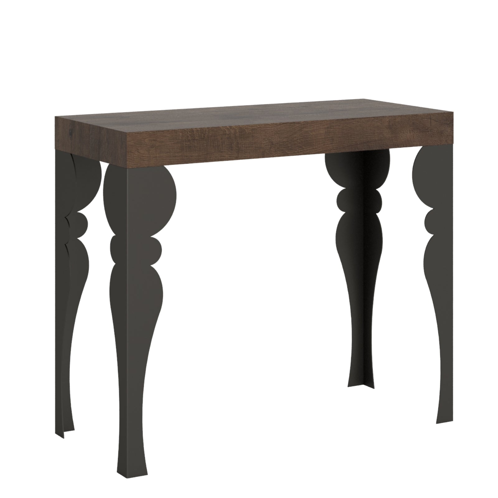 Quando non è allungato, il tavolo consolle "Lecce" può essere posizionato contro una parete o utilizzato come una consolle per l'appoggio di oggetti decorativi o come piano di lavoro aggiuntivo. Tuttavia, quando è necessario ospitare più persone a tavola, il meccanismo di allungamento consente di trasformare la consolle in un tavolo da pranzo più ampio e accogliente.