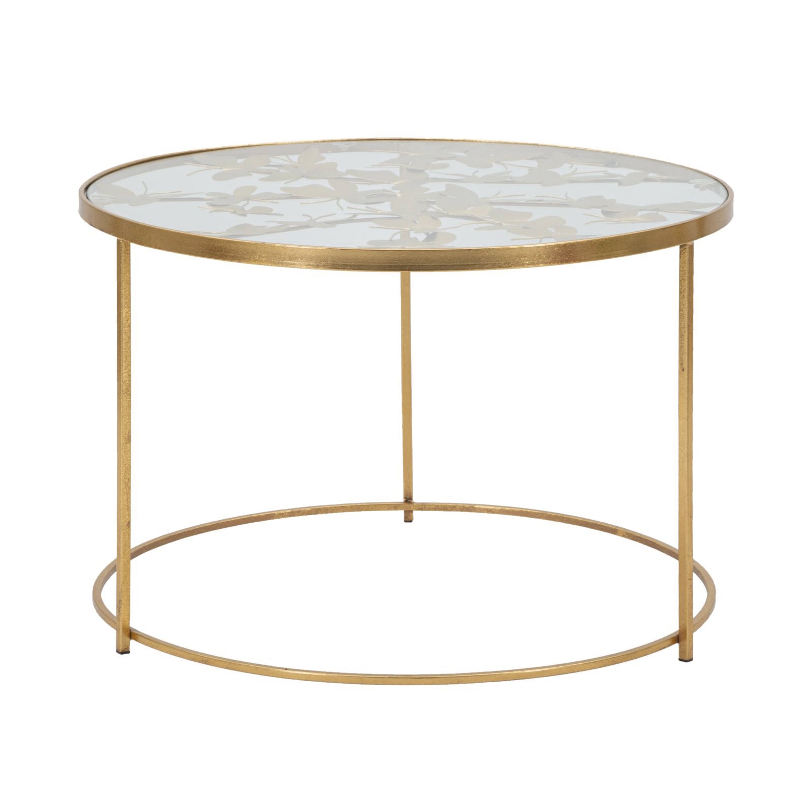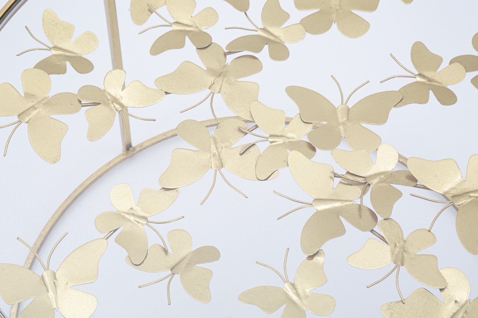 Tavolo da caffè struttura in metallo e ripiano in vetro con farfalle per interni