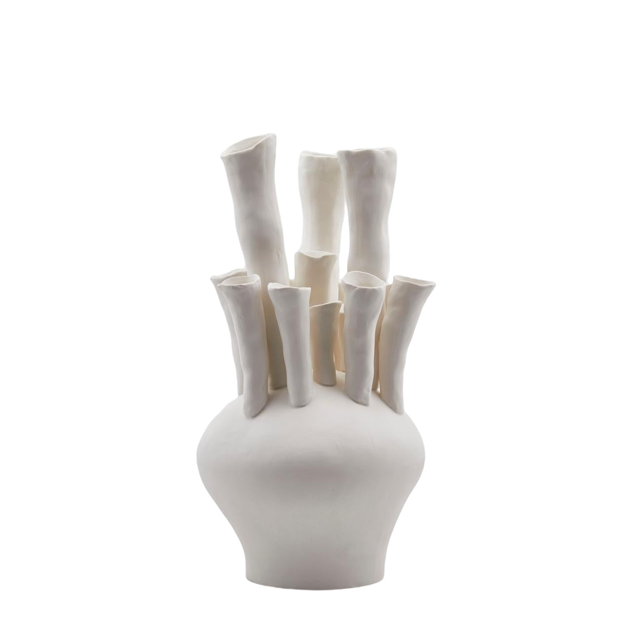 Vaso decorativo natalizio "Tubes" con tubi, bianco da 46 cm per interno