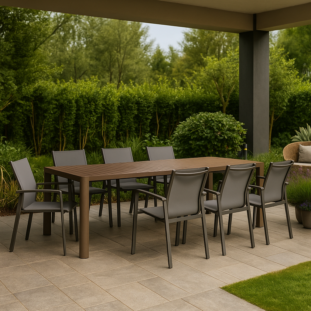 Ideale per creare un ambiente outdoor raffinato e accogliente, perfetto per cene estive o momenti di relax in giardino.
