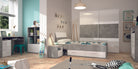 La libreria è dotata alla base di un doppio cestone in color bianco laccato che scorre su linee di metallo e una maniglia dello stesso colore, che permette di usarlo per riporre comodamente i vostri oggetti al riparo.