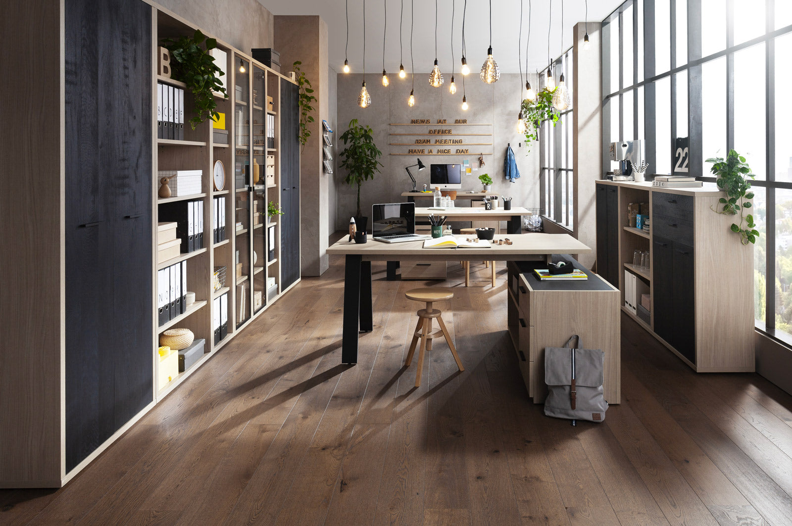 In combinazione con gli altri elementi della linea, quali la libreria bassa a tre vani e le ante (cod. AN4803, AN4805) è possibile creare pareti attrezzate personalizzate per lo studio o l'home office.