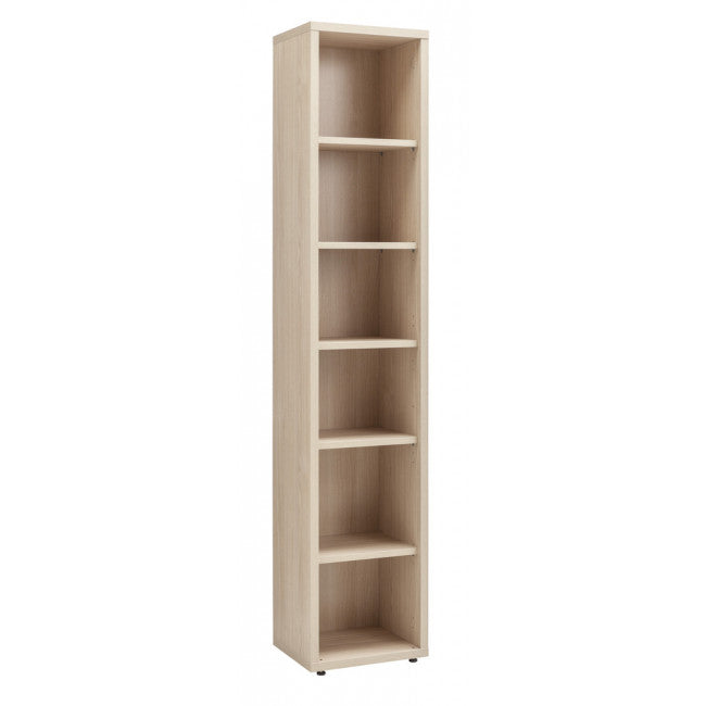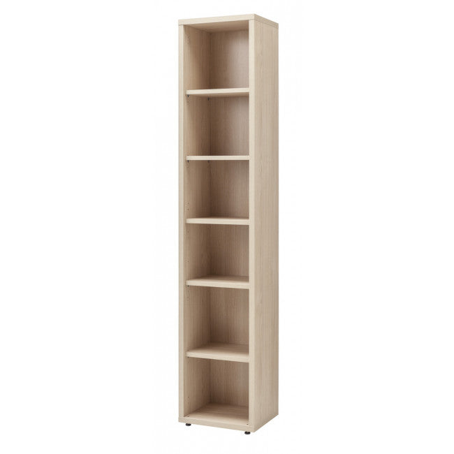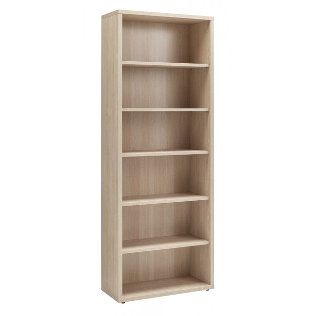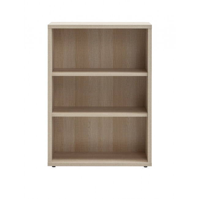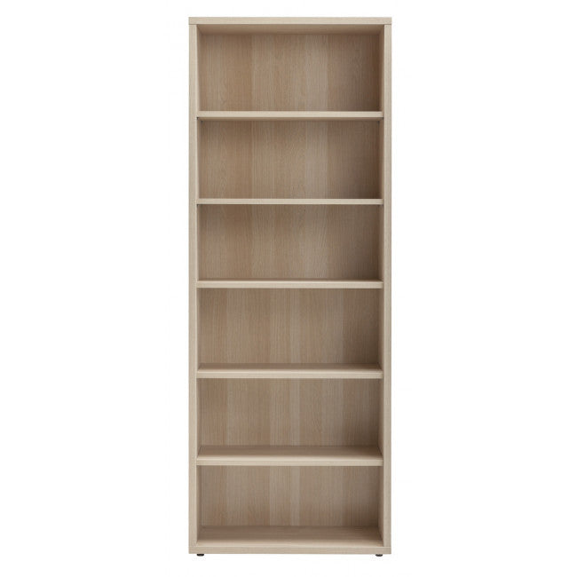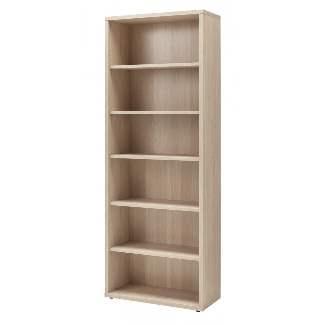 La libreria è dotata di mensole regolabili in altezza, schienale posteriore in tinta e piedini alla base.