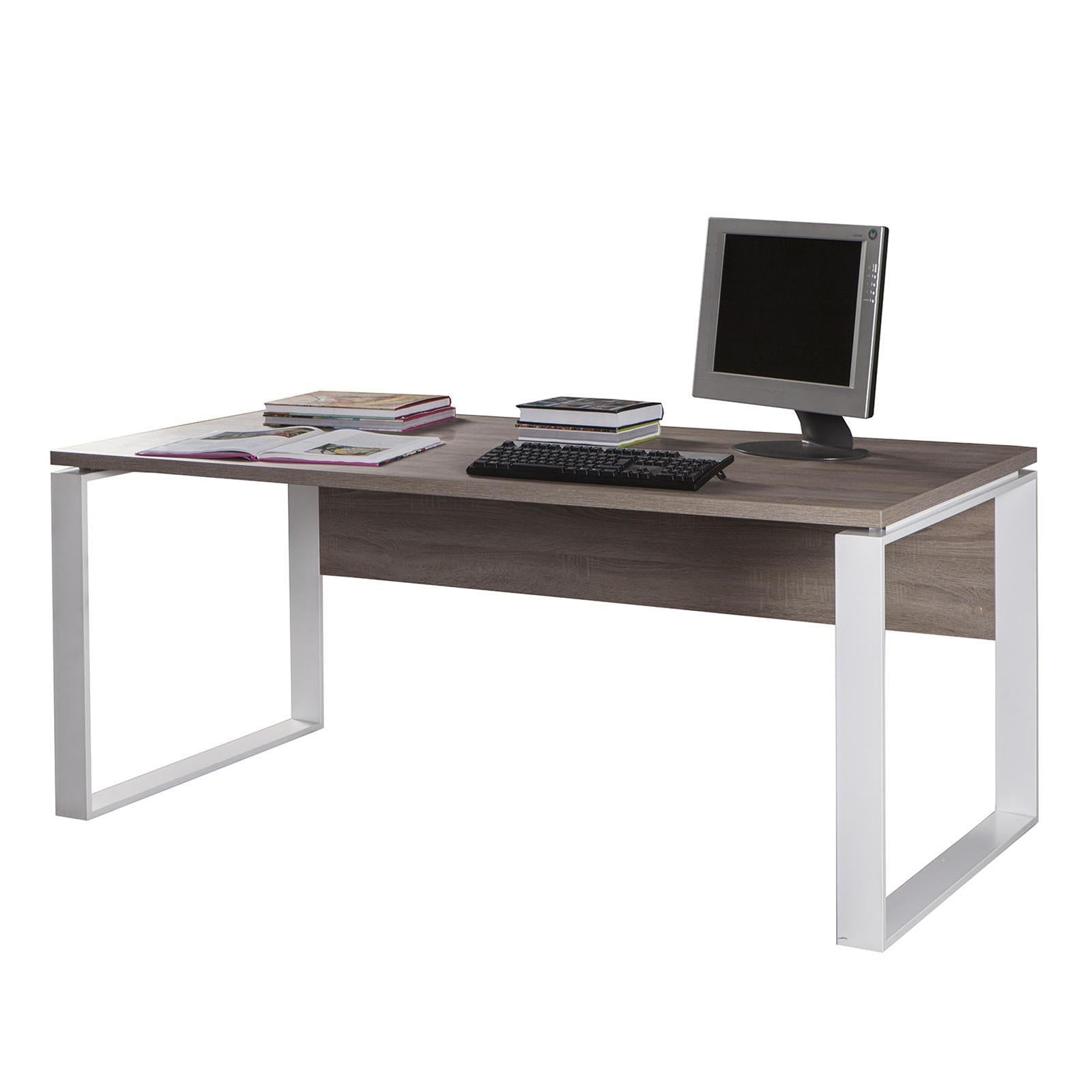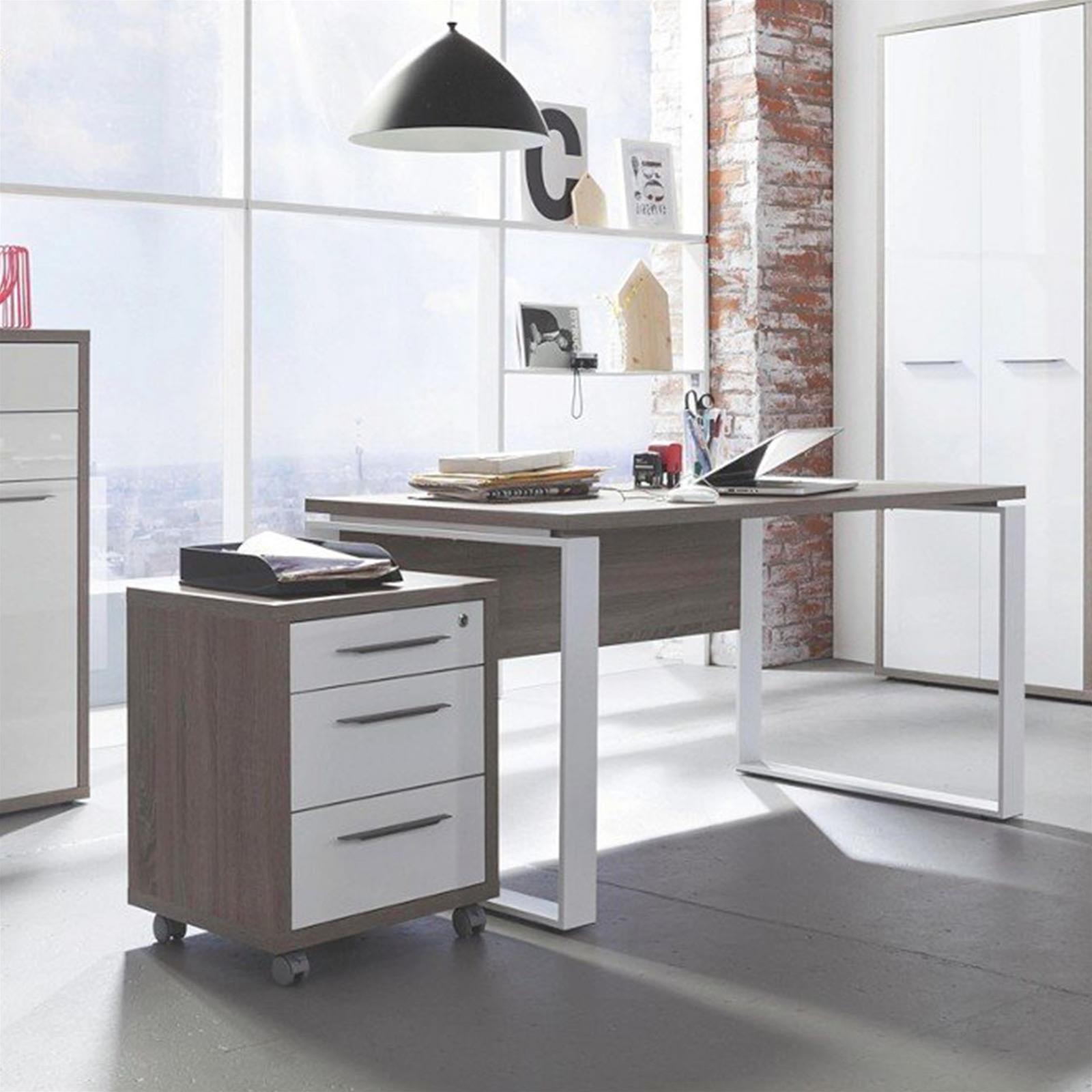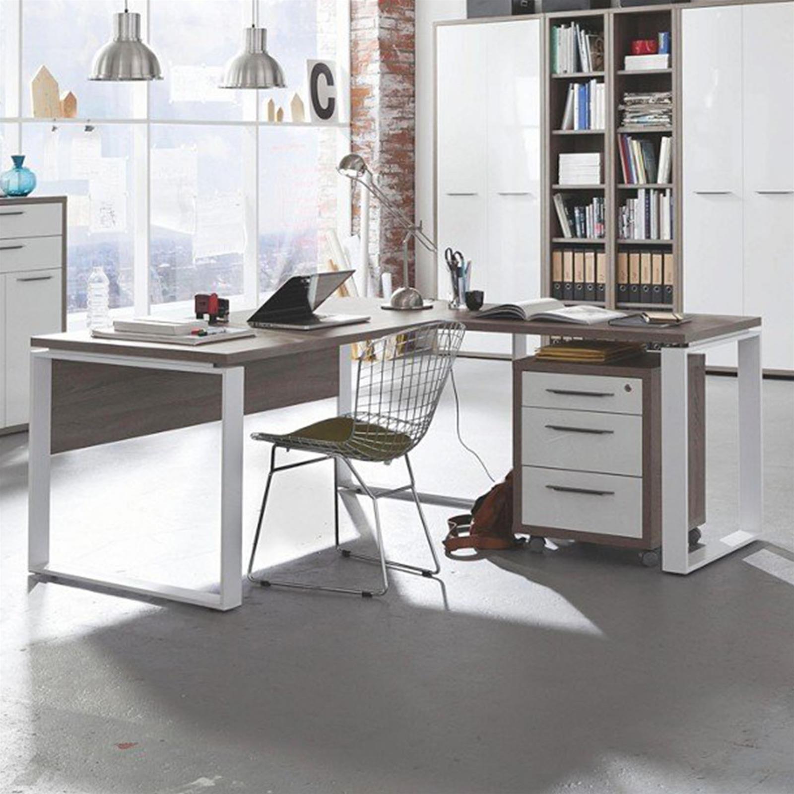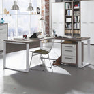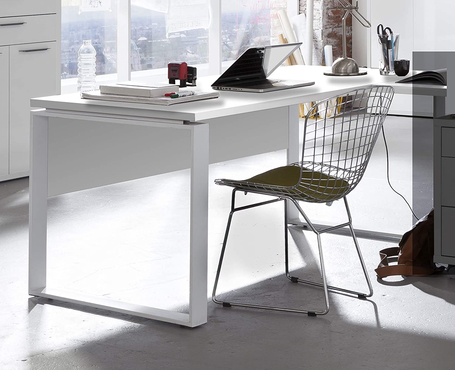 Scrivania elegante in legno con piedi in Acciaio da ufficio e stanzetta porta pc "Made in Italy"