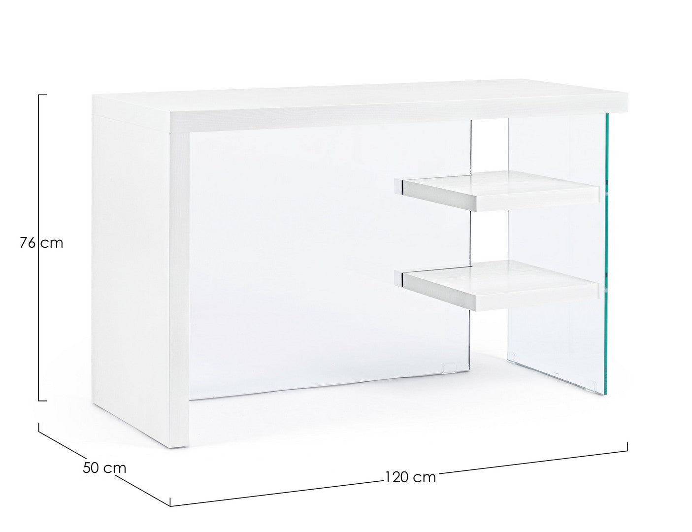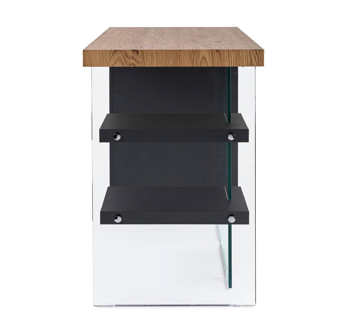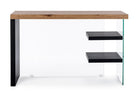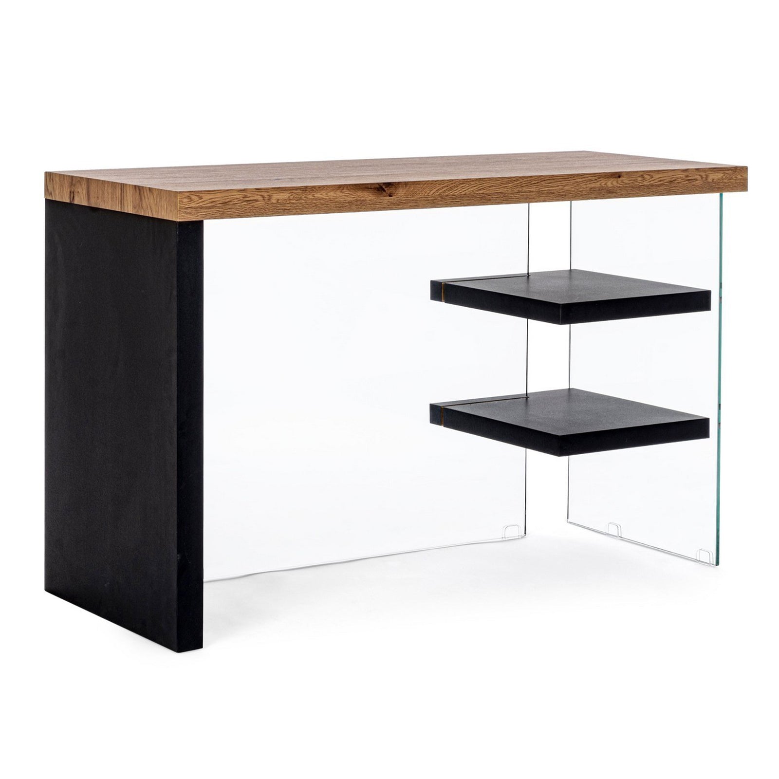 Scrivania "Line" Wood con 2 mensole, piano in mdf, lato in vetro temperato, 120 x 50 cm