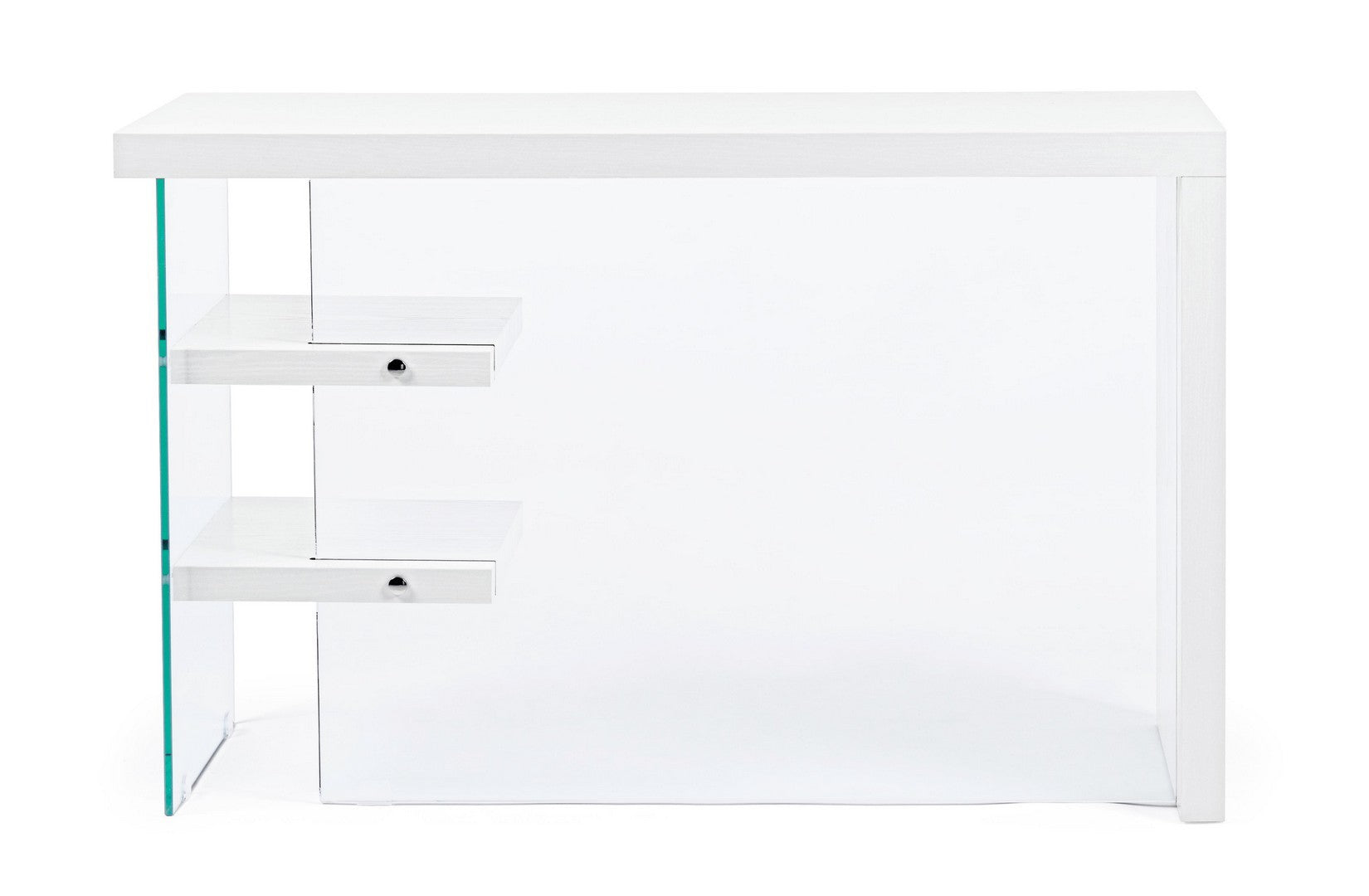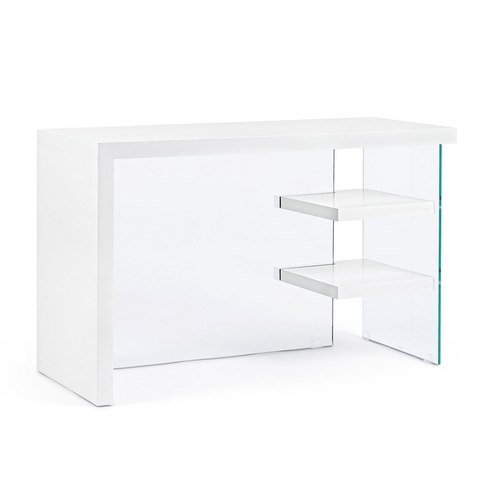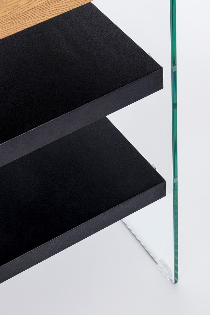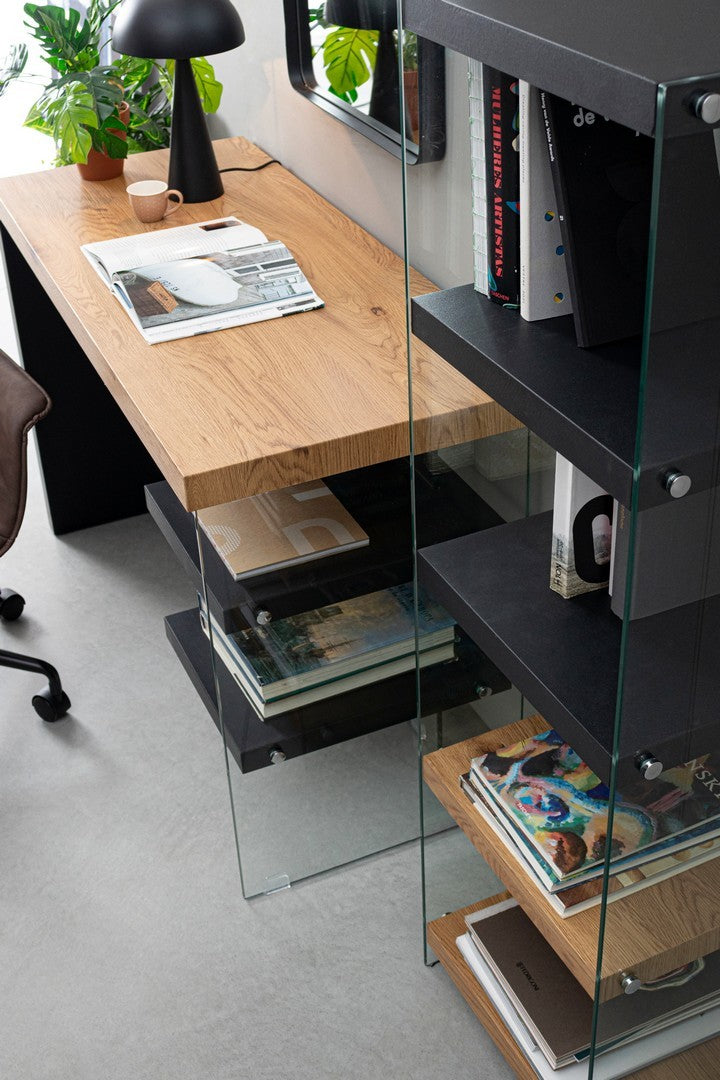 Scrivania "Line" Wood con 2 mensole, piano in mdf, lato in vetro temperato, 120 x 50 cm