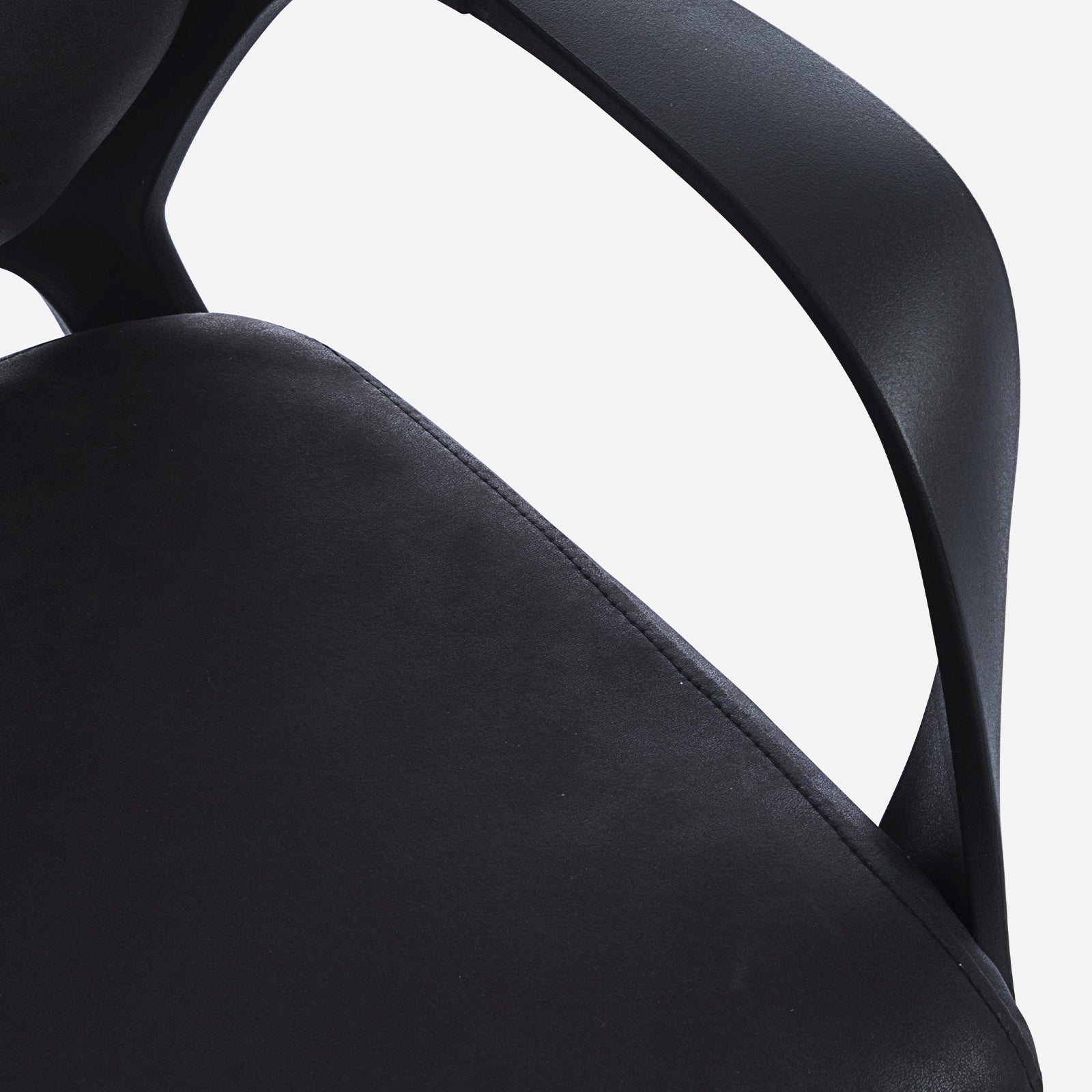 Questa sedia è dotata di braccioli cromati di colore Nero e di ruote in plastica.