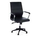 La Sedia da ufficio Brent è realizzata con base in metallo 56 cm. e seduta imbottita e schienale basso in ecopelle.
