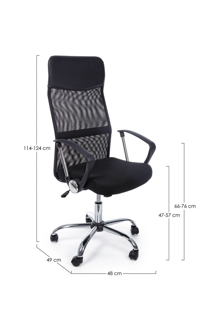 La sedia "Dakar" da ufficio è una combinazione di eleganza e funzionalità. Caratterizzata da braccioli in acciaio cromato che conferiscono un tocco di classe, questa sedia è anche dotata di un meccanismo di altezza regolabile, garantendo comfort personalizzabile per adattarsi alle tue esigenze ergonomiche.