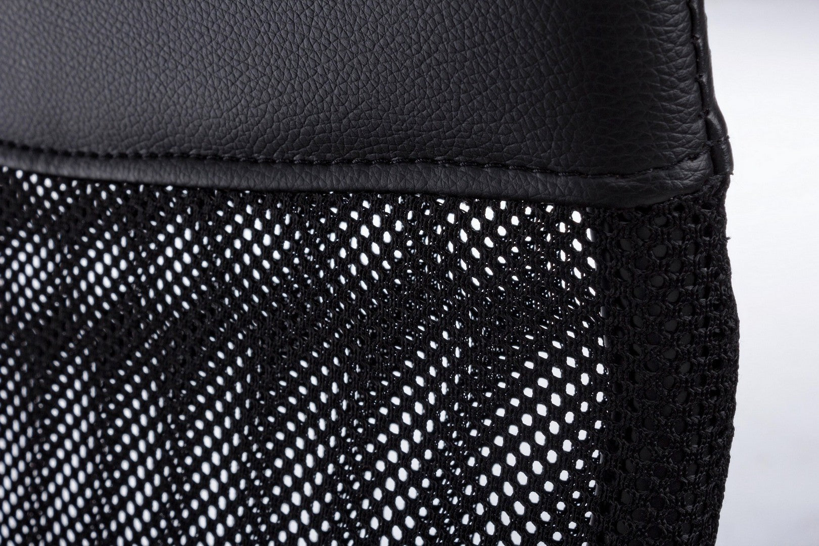 - Seduta imbottita e rivestita in tessuto 100% poliestere e tessuto a rete con inserto in similpelle.