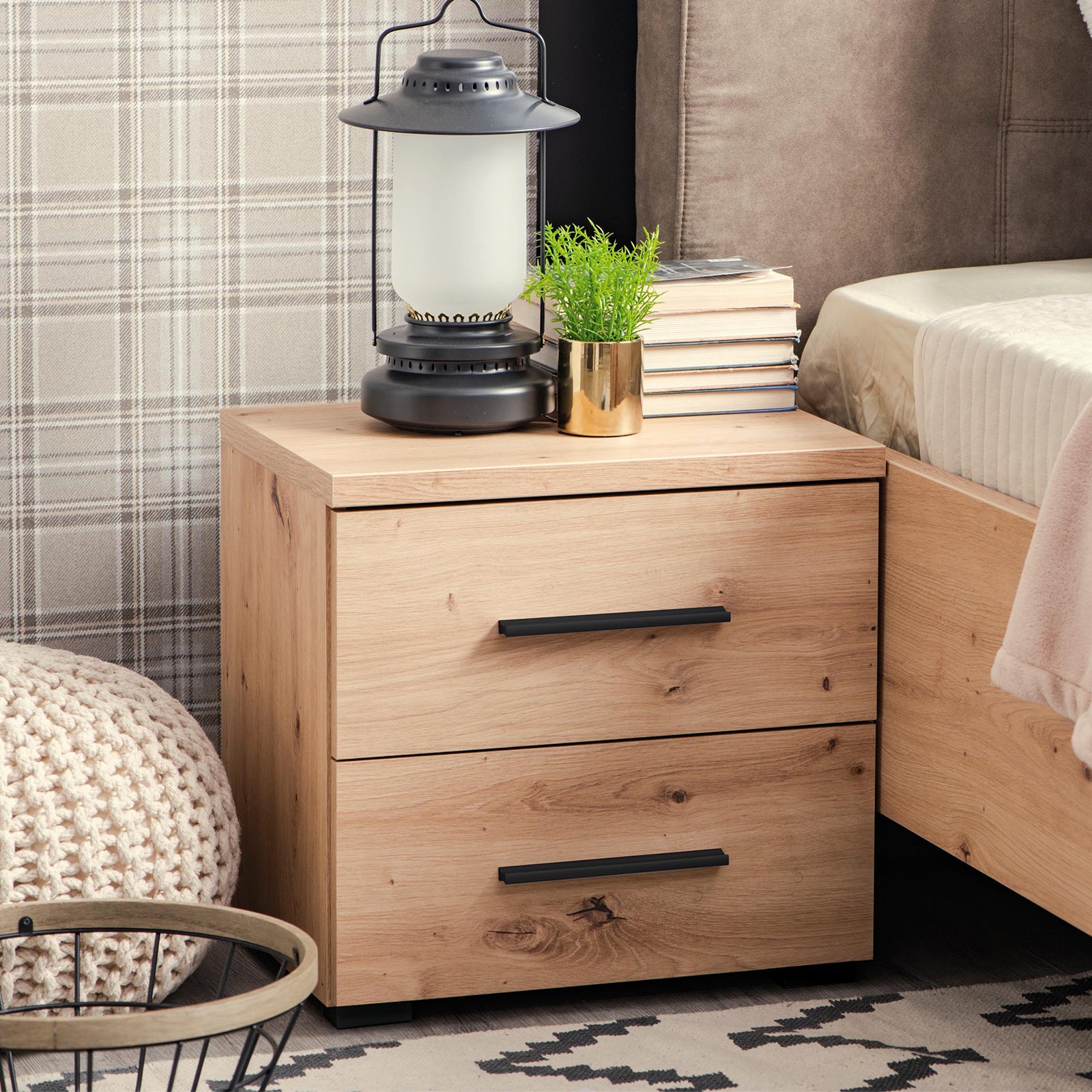 Comodino con 2 cassetti "Austria" Rovere con guide in metallo h 43 cm