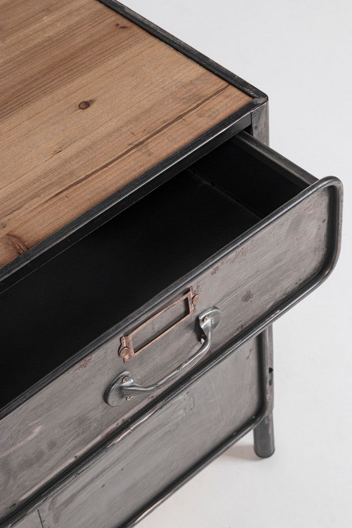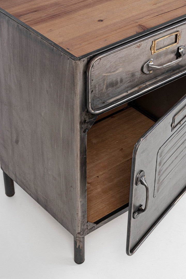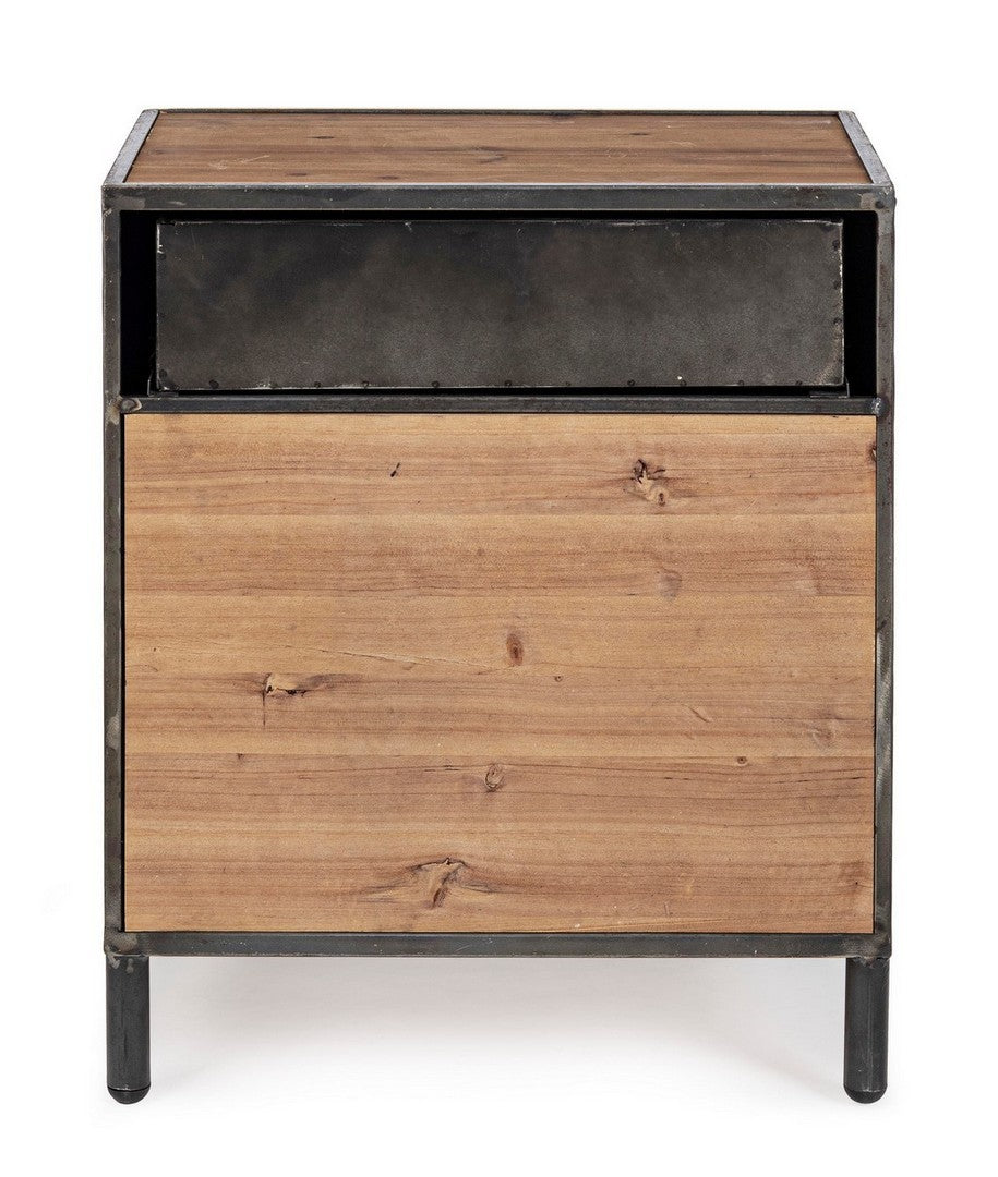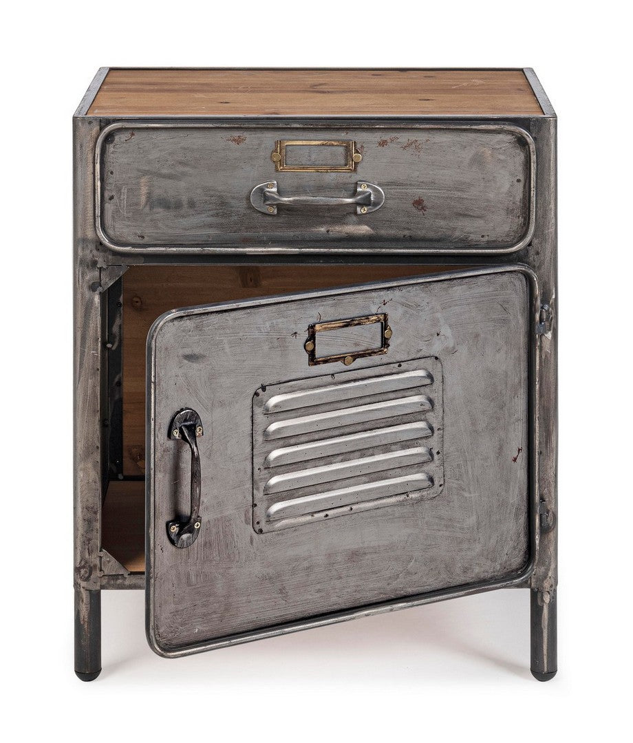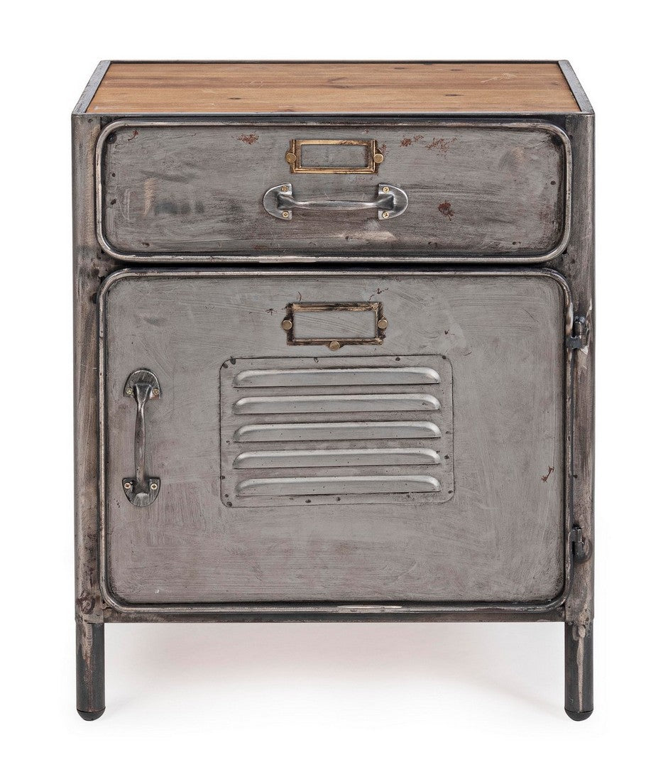 Comodino "Store" per camera, Acciaio Verniciato A Polvere Poliestere E Legno Di Pino