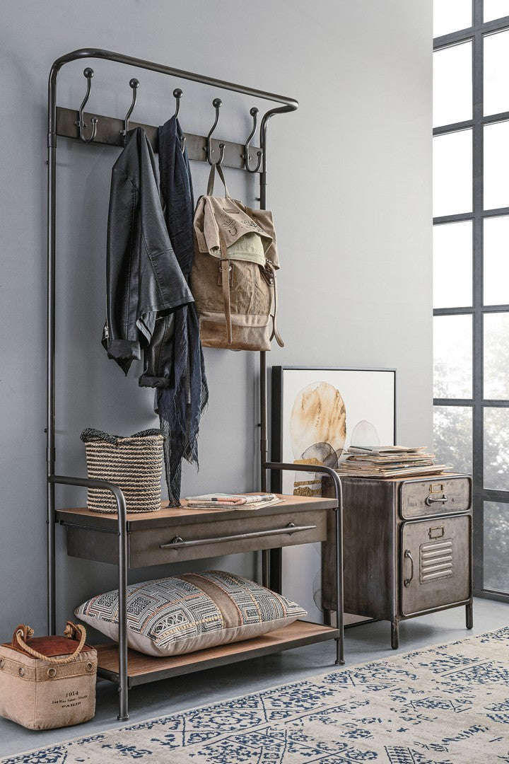 Il comodino "Store" per camera è una sofisticata fusione di acciaio verniciato a polvere poliestere e legno di pino. Questo comodino offre una combinazione di stile moderno e materiali di alta qualità.
