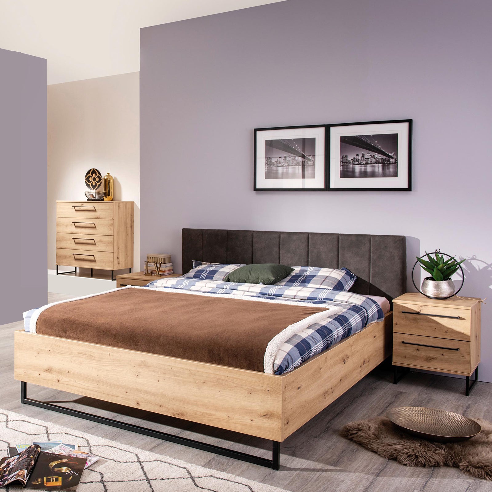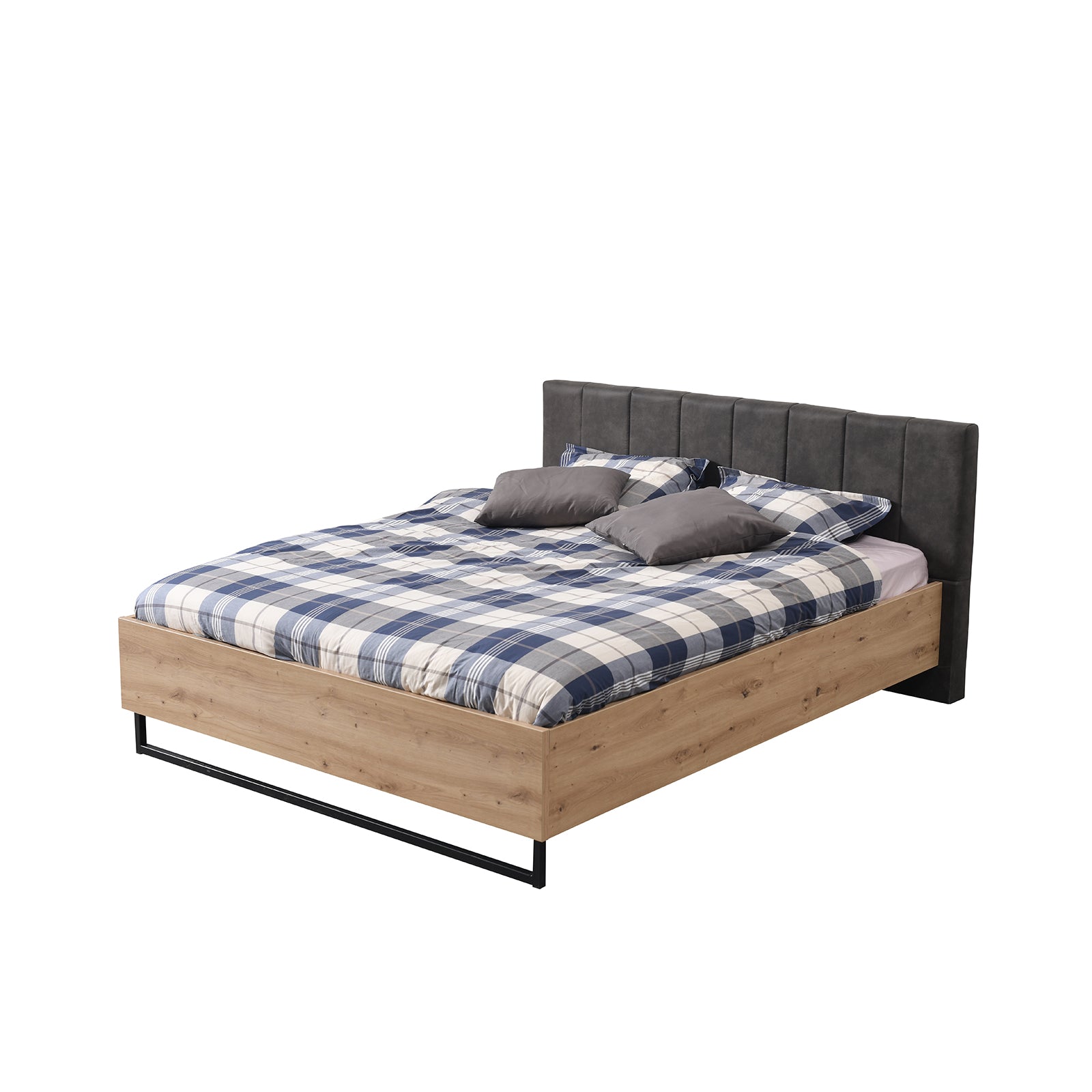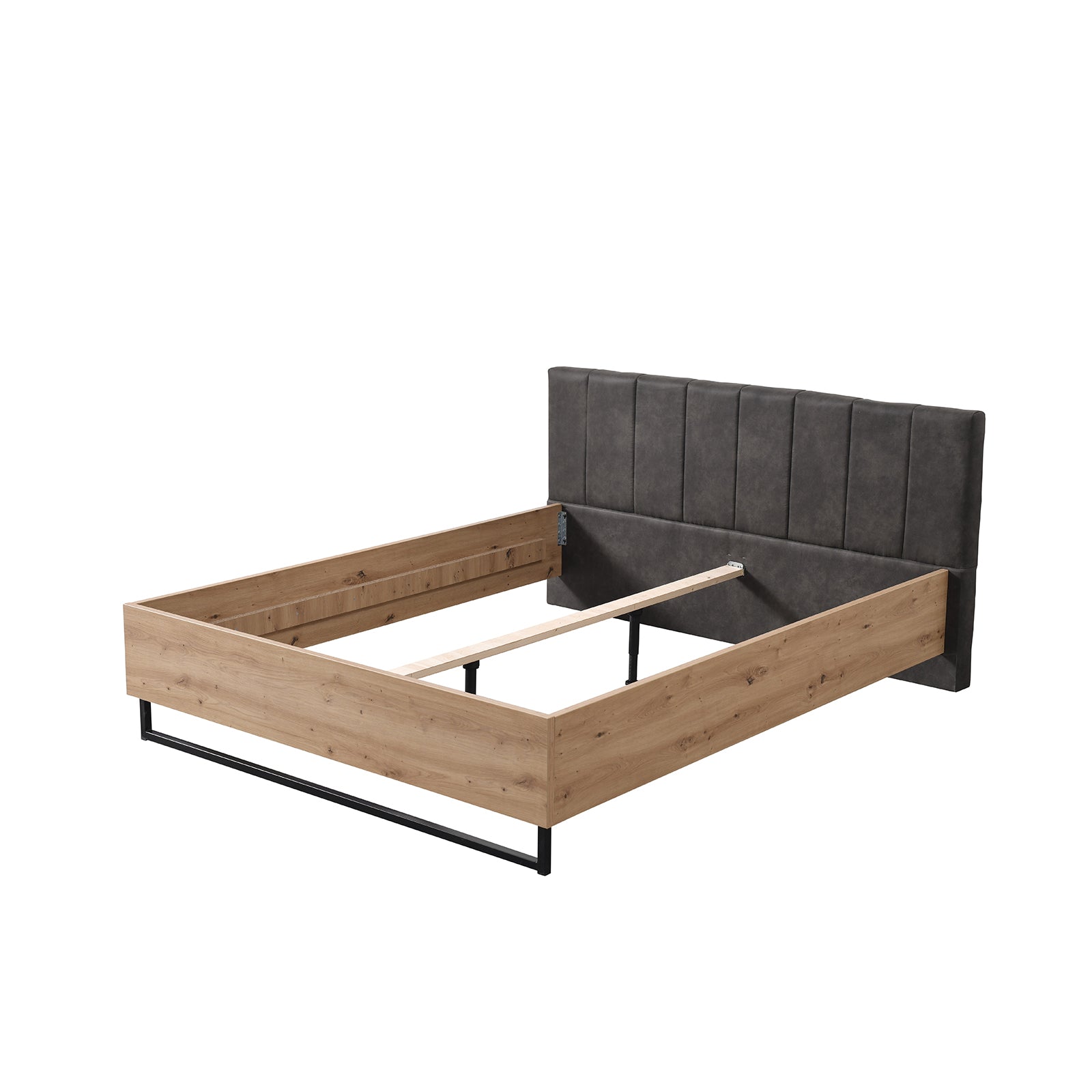 Letto matrimoniale Spain in colore rovere e spalliera nera 177,5 x 212 cm.