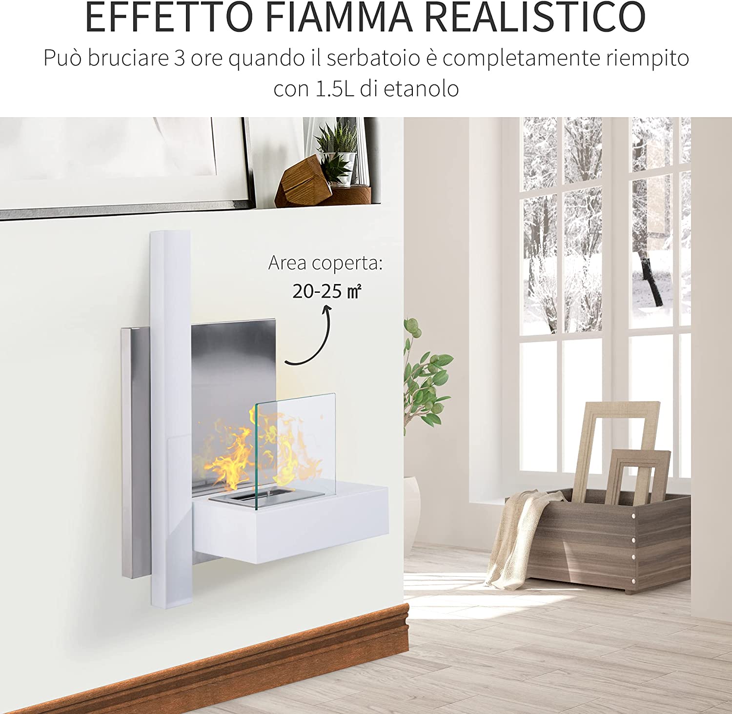 Camino a Bioetanolo da parete "Vienna" in Acciaio da 3,5 Kw arredamento Moderno