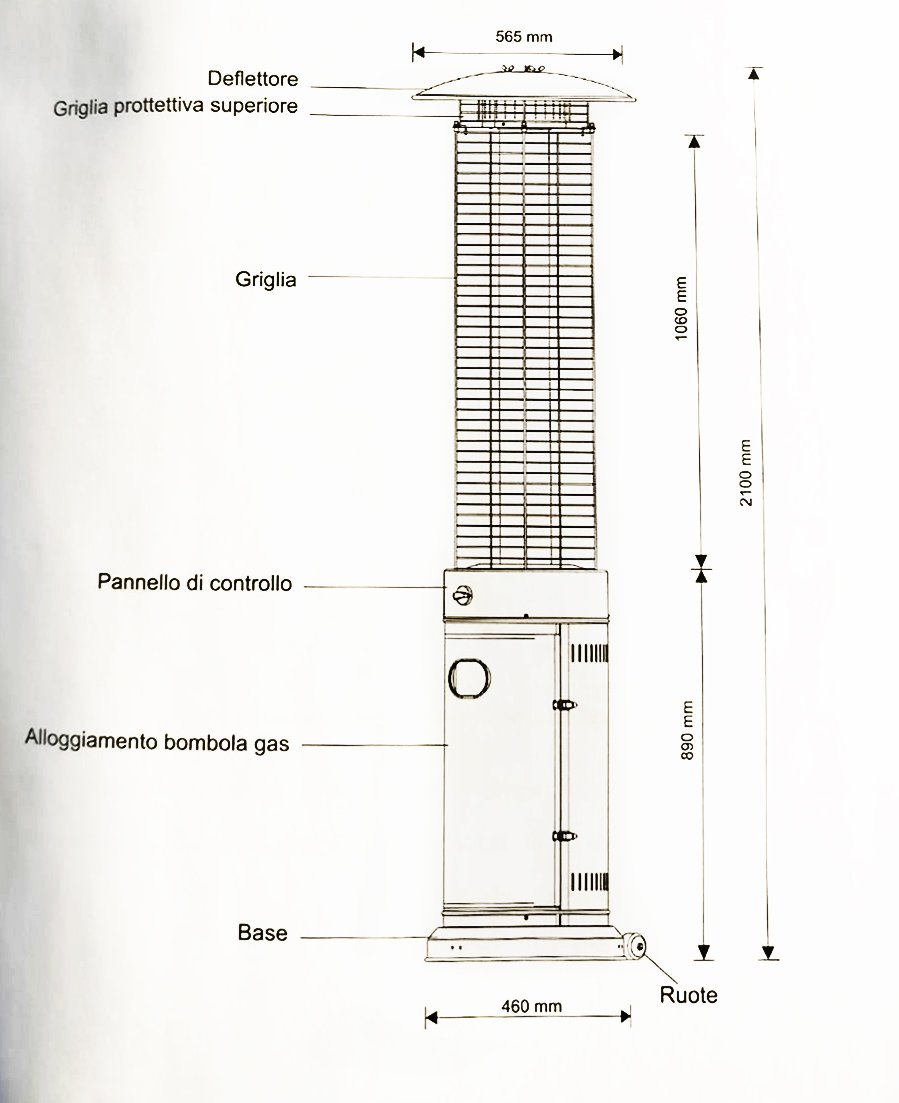 Altezza 210 cm. Alloggio per bombola da 15 kg