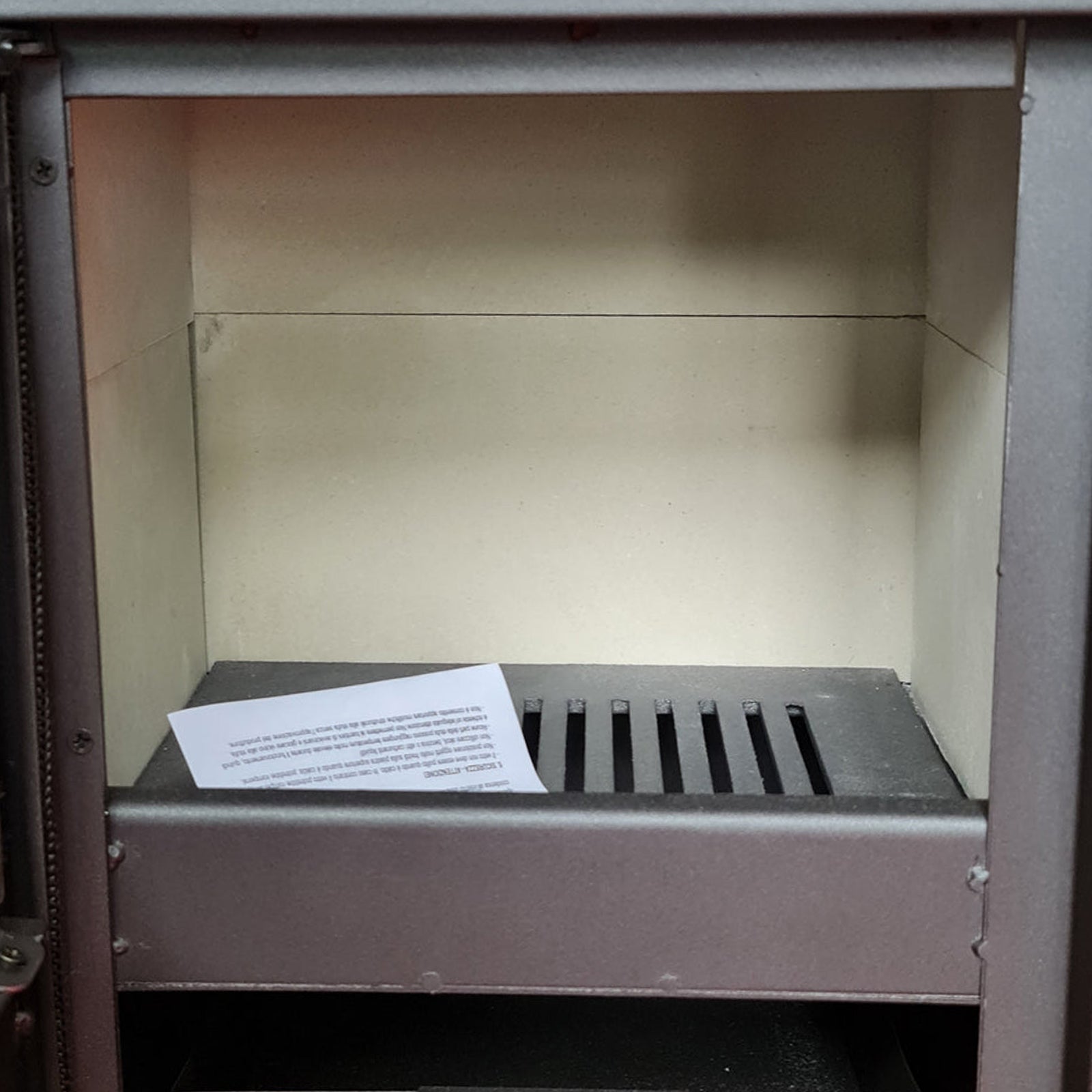 - Il vano sottostante consente lo stivaggio della legna necessaria durante la giornata. In dotazione guanto specifico resistente al calore per il carico della legna