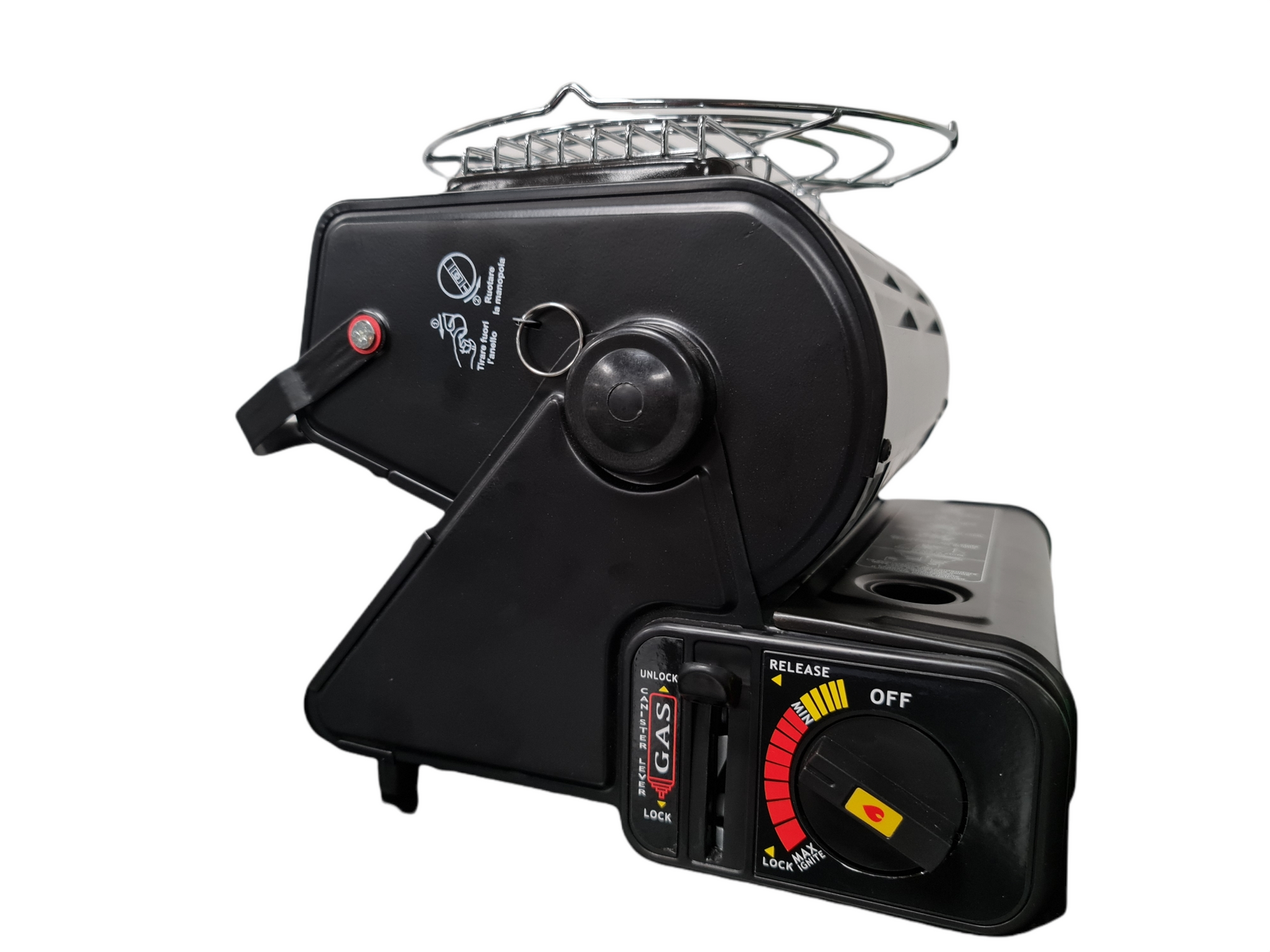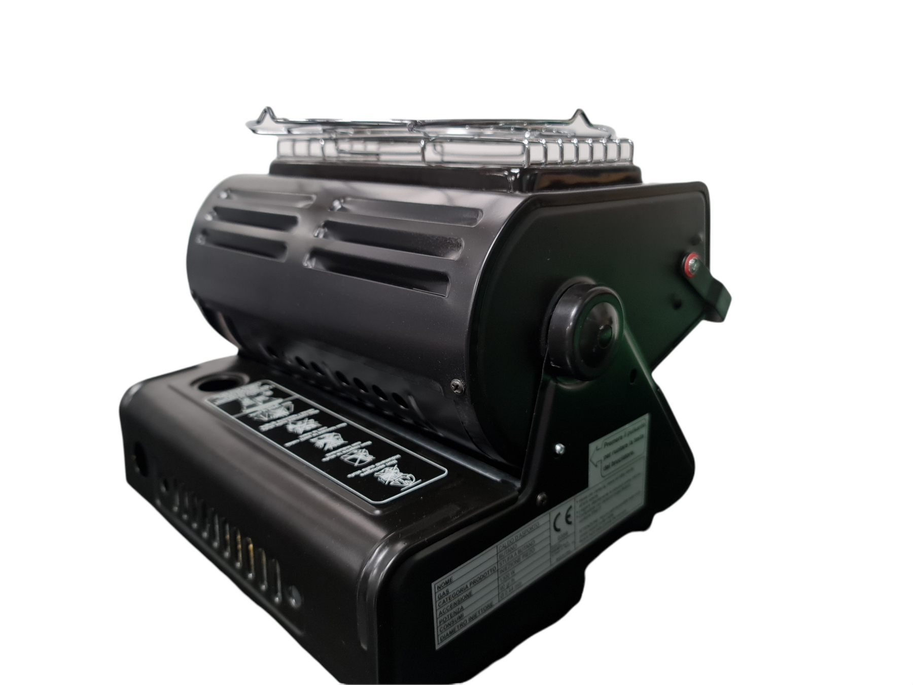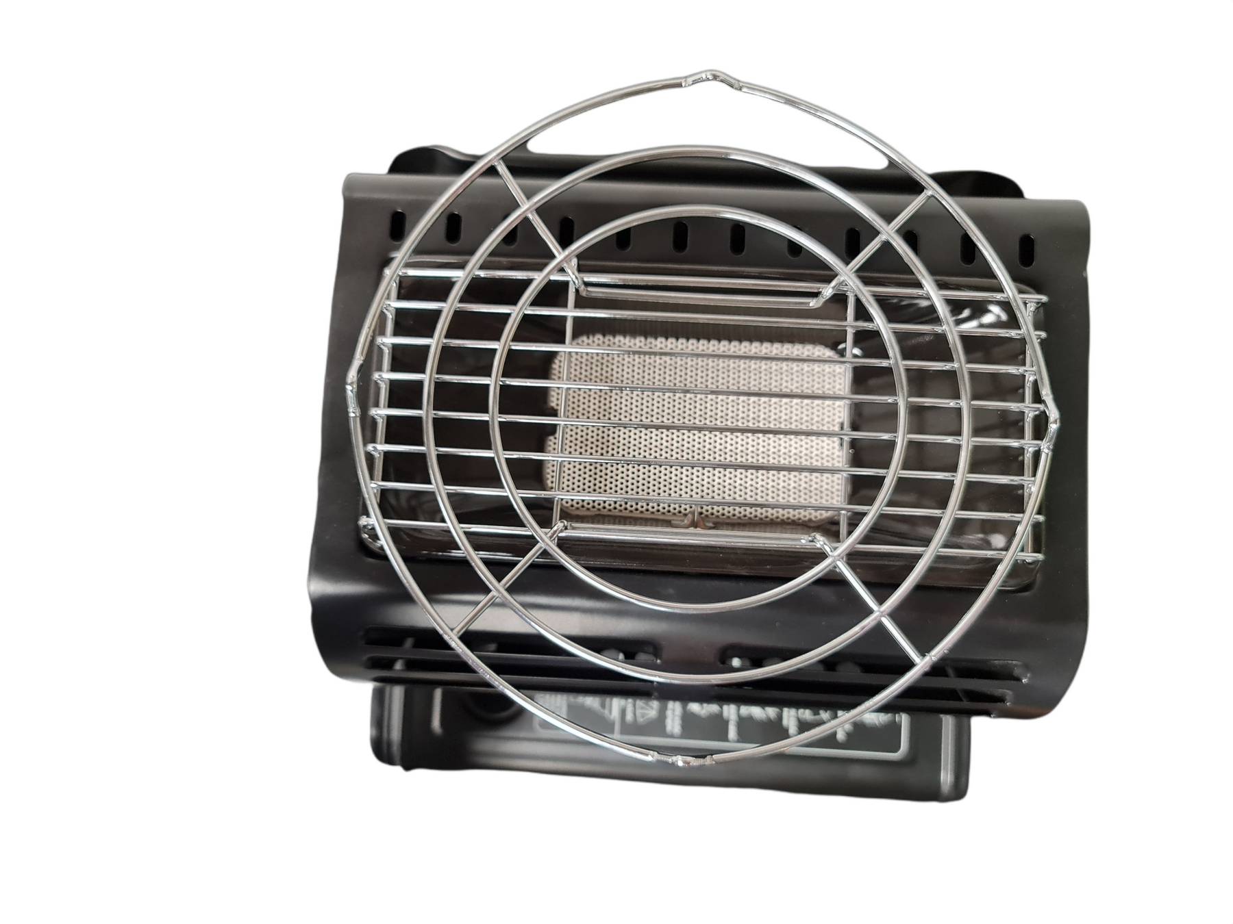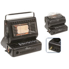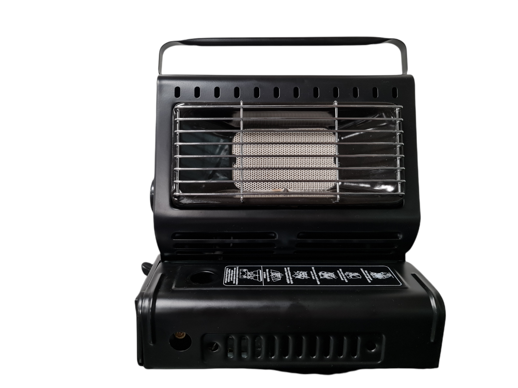 Stufa a gas portatile con pannello radiante in ceramica con tecnologia a basso consumo energetico e inclinabile.