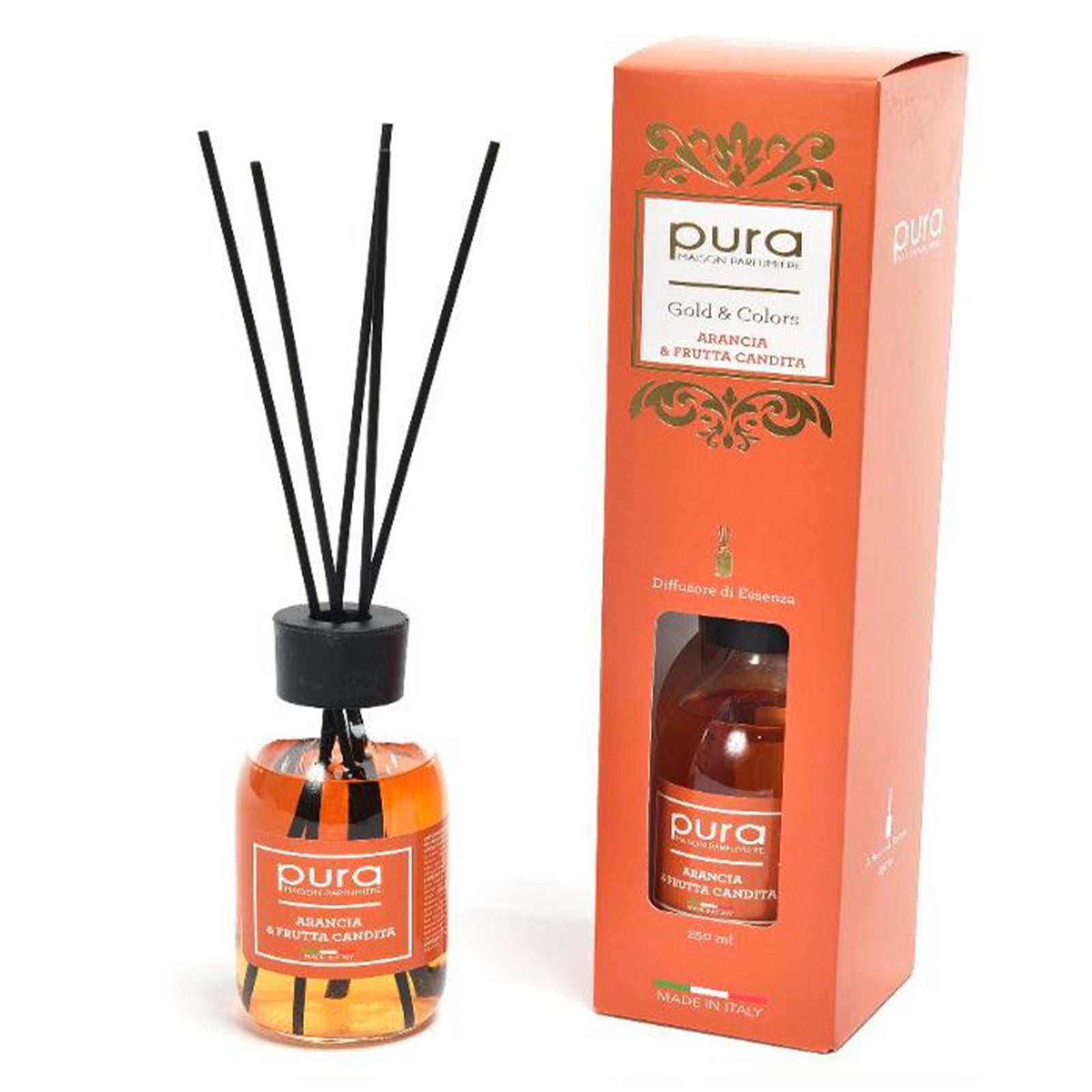 Diffusore di essenza "Linea gold" con bacchetti in cotone profumatore per ambienti da 250 ml