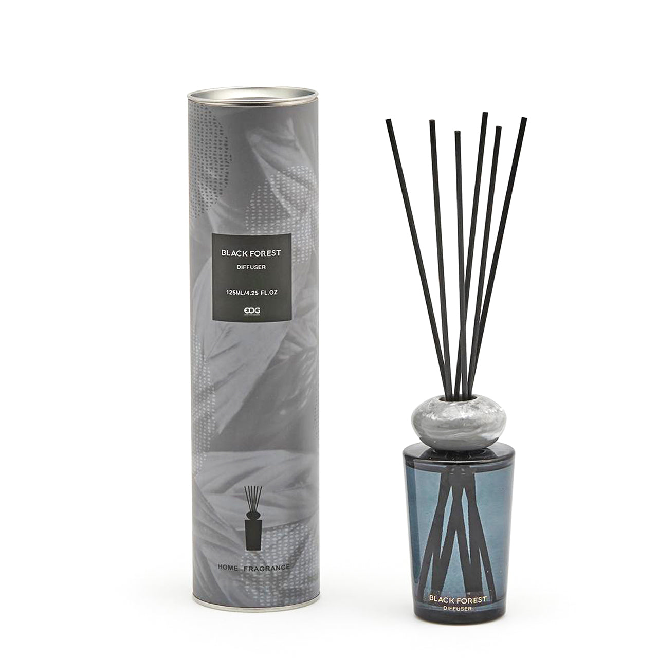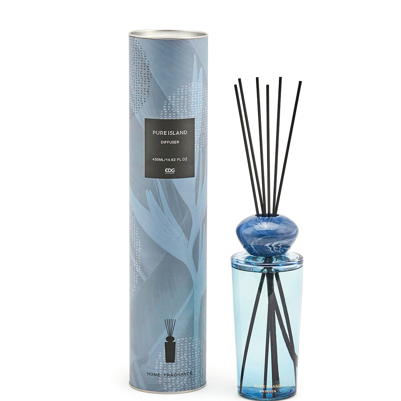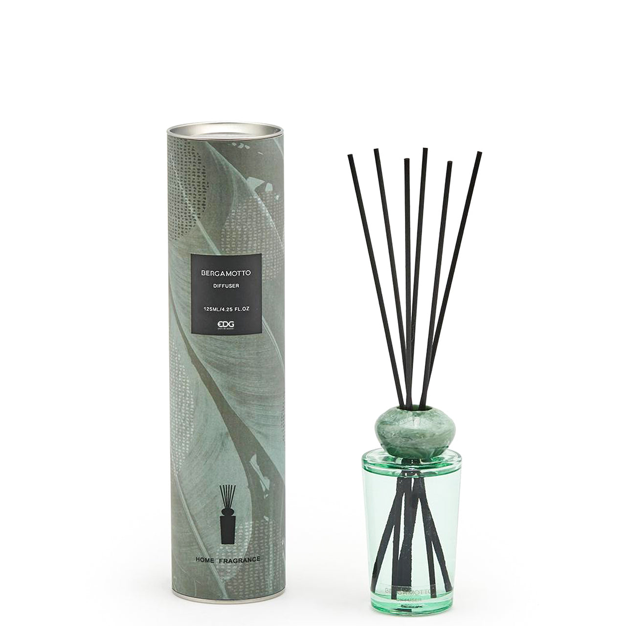 Il kit è composto da una particolare confezione che contiene bottiglia in vetro con tappo effetto marmo e dei bastoncini in materiale sintetico alti 15 cm.