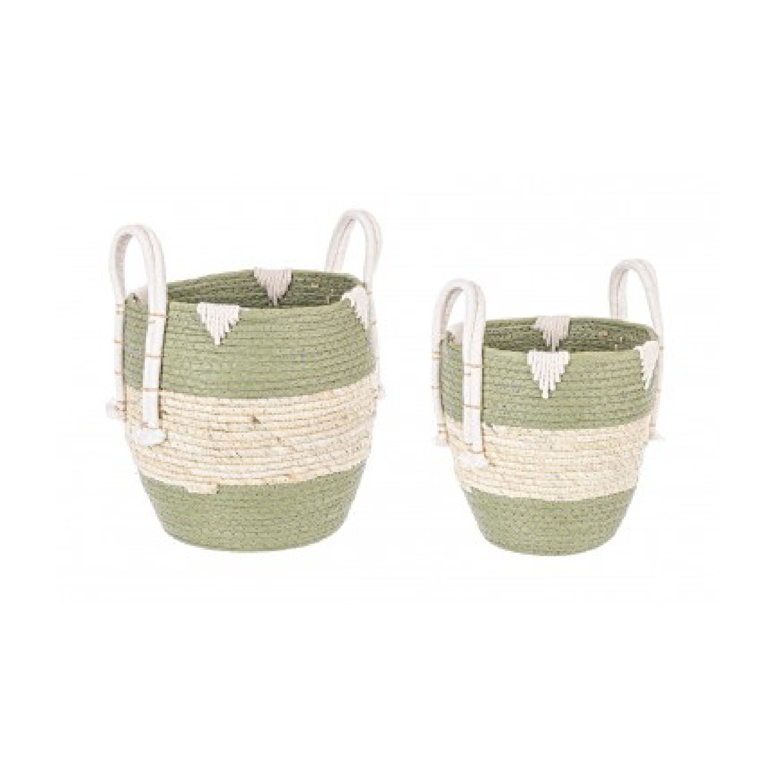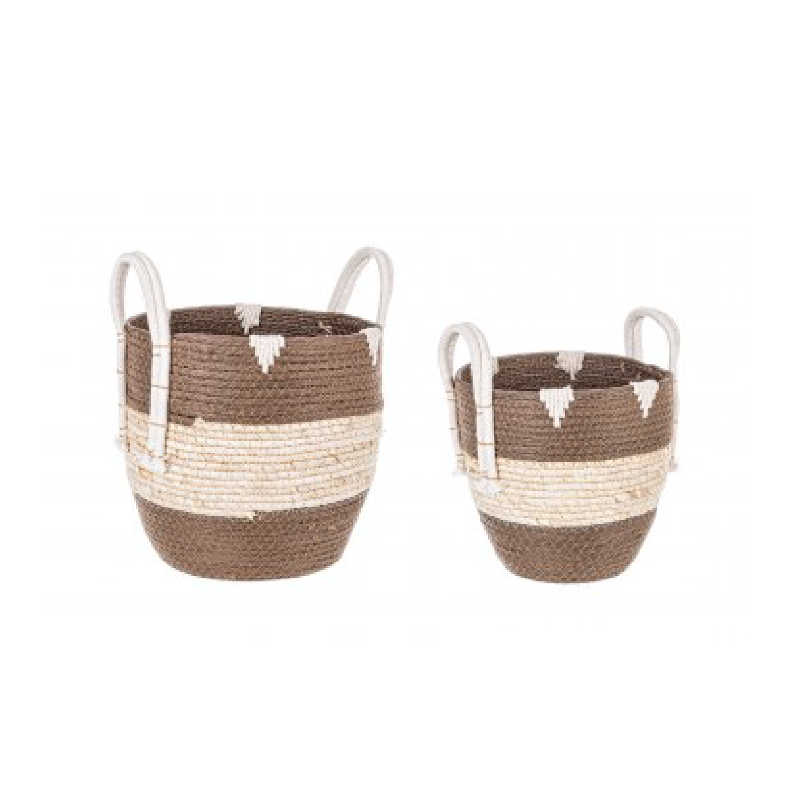 Il Set 2 Cesta Thelma è realizzato con materiali naturali come MAIS, CARTA e COTONE, perfetti per l'uso esterno.