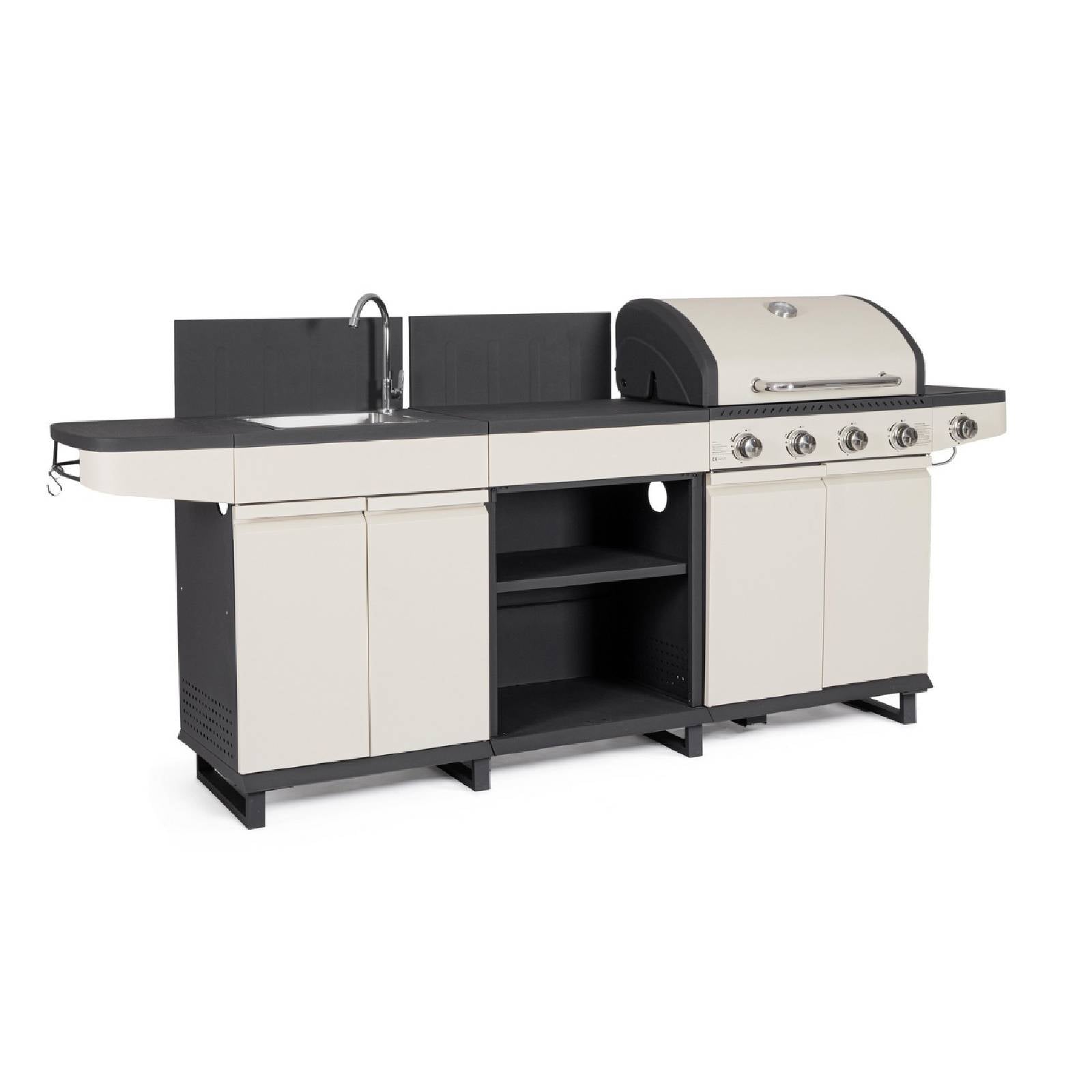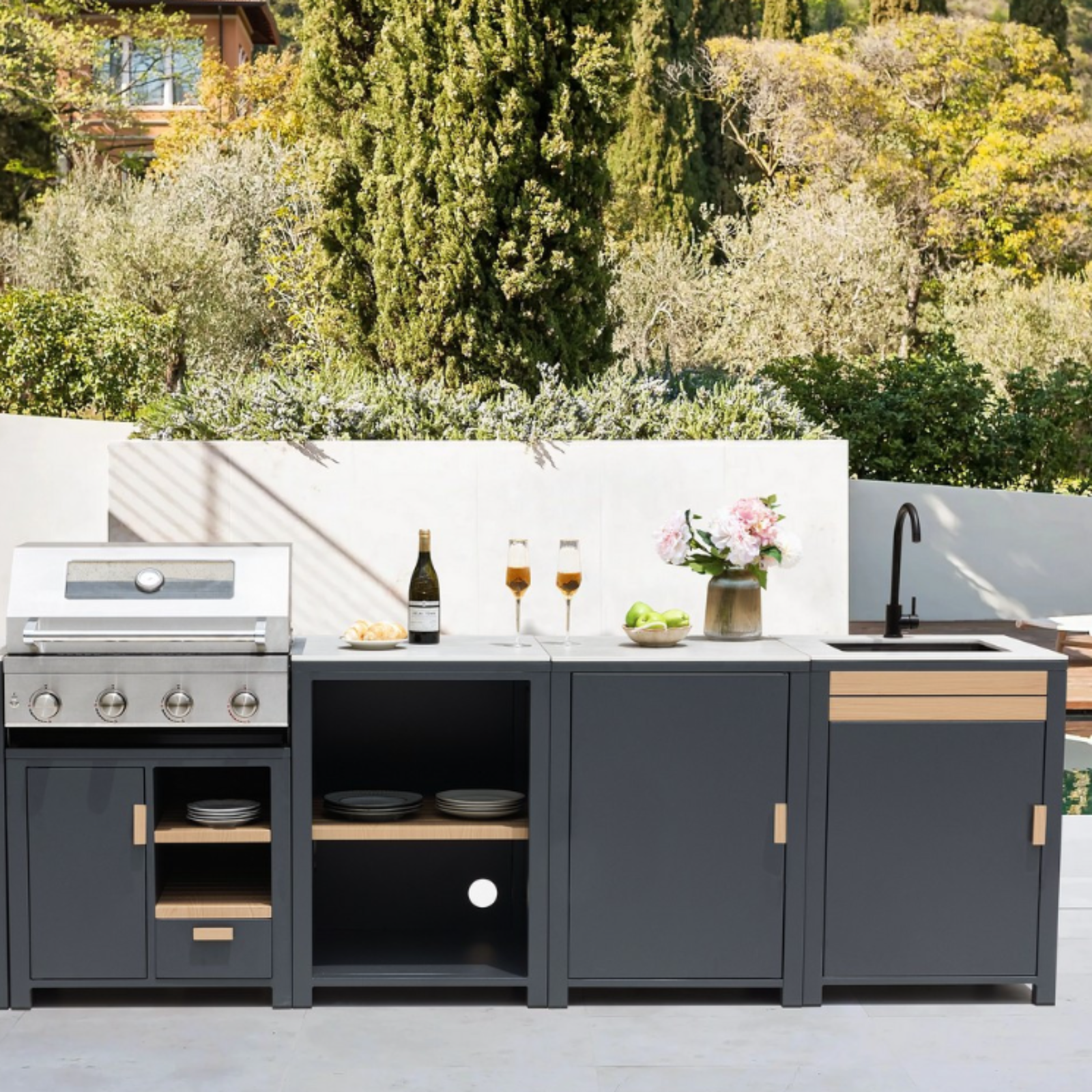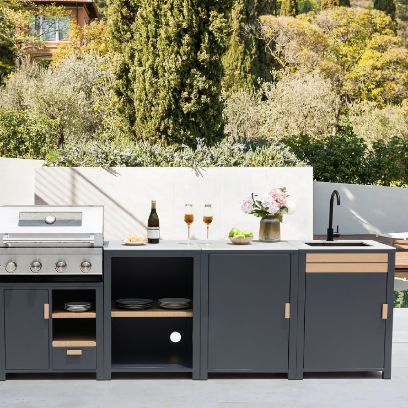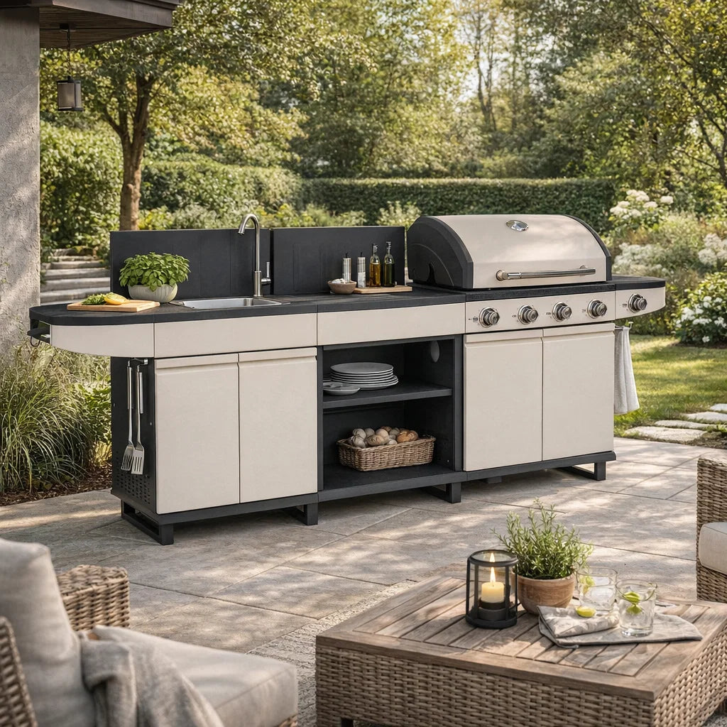 Cucina da esterno: Un'area all'aperto per cucinare e socializzare, spesso dotata di barbecue, piano cottura e zona per mangiare. Ideale per grigliate e momenti conviviali all'aria aperta.