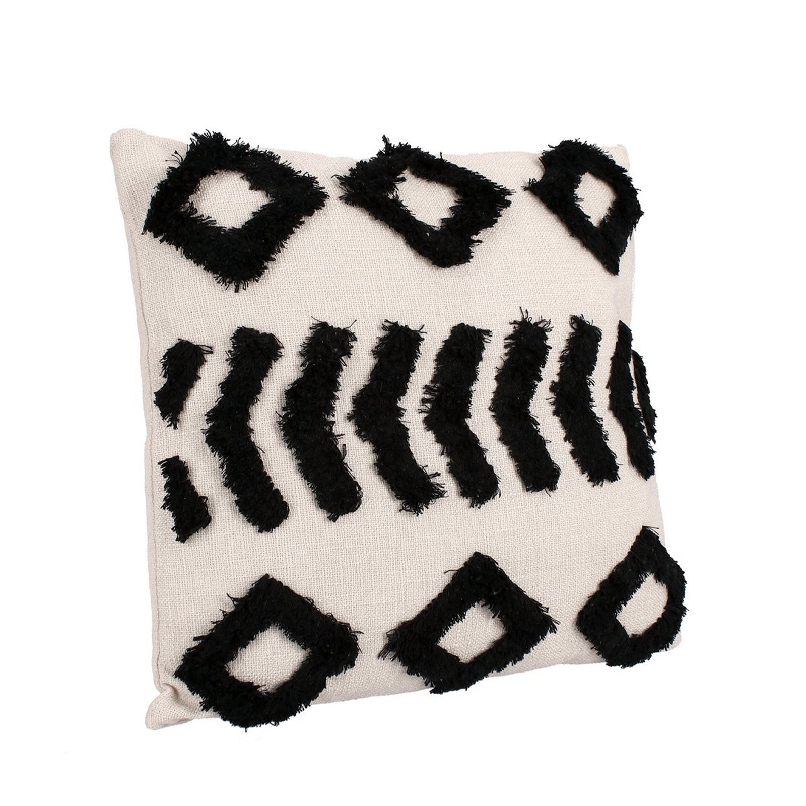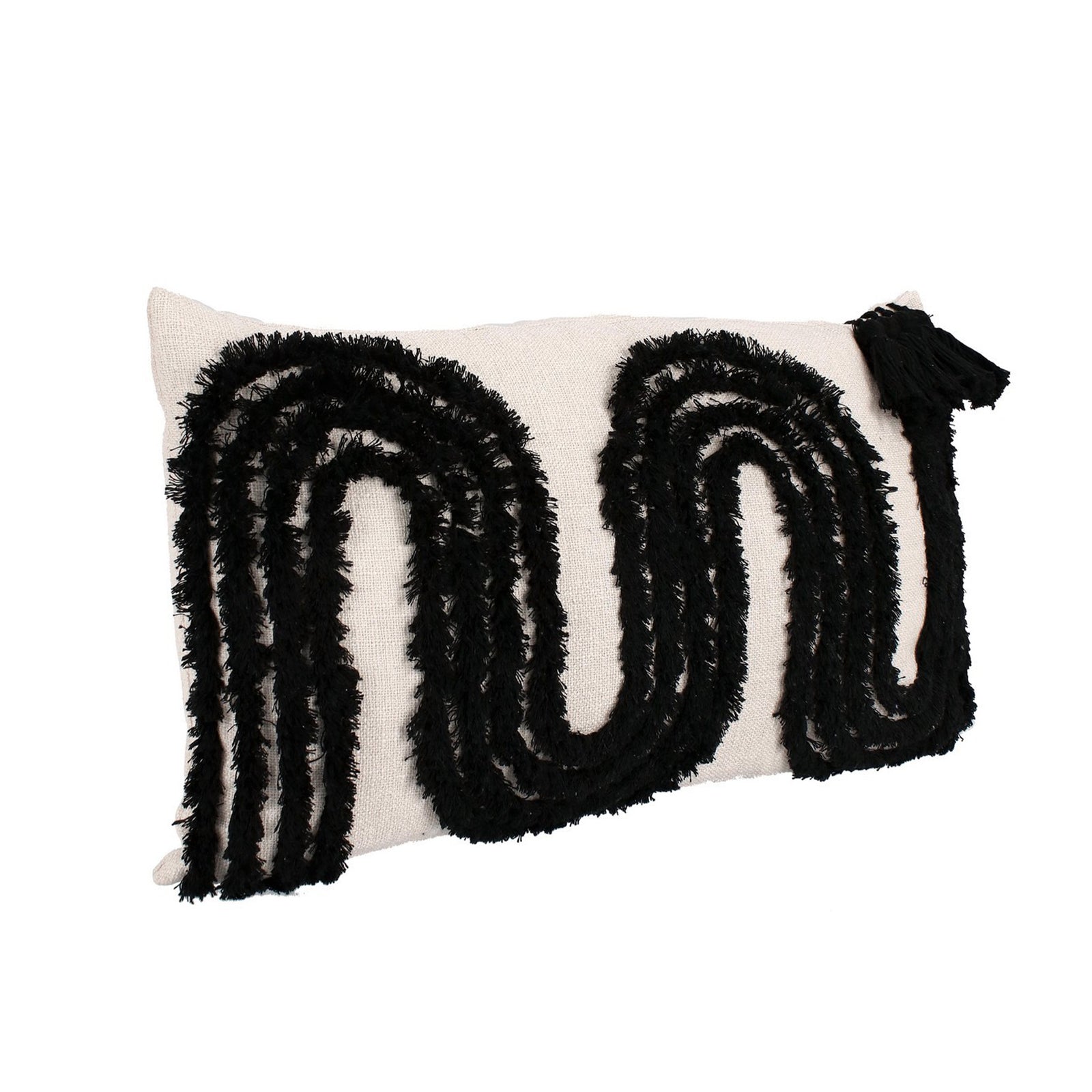 Il colore nero e bianco del cuscino aggiunge un tocco di eleganza e contrasto visivo, permettendogli di integrarsi in una varietà di stili di arredamento, dal classico al contemporaneo.