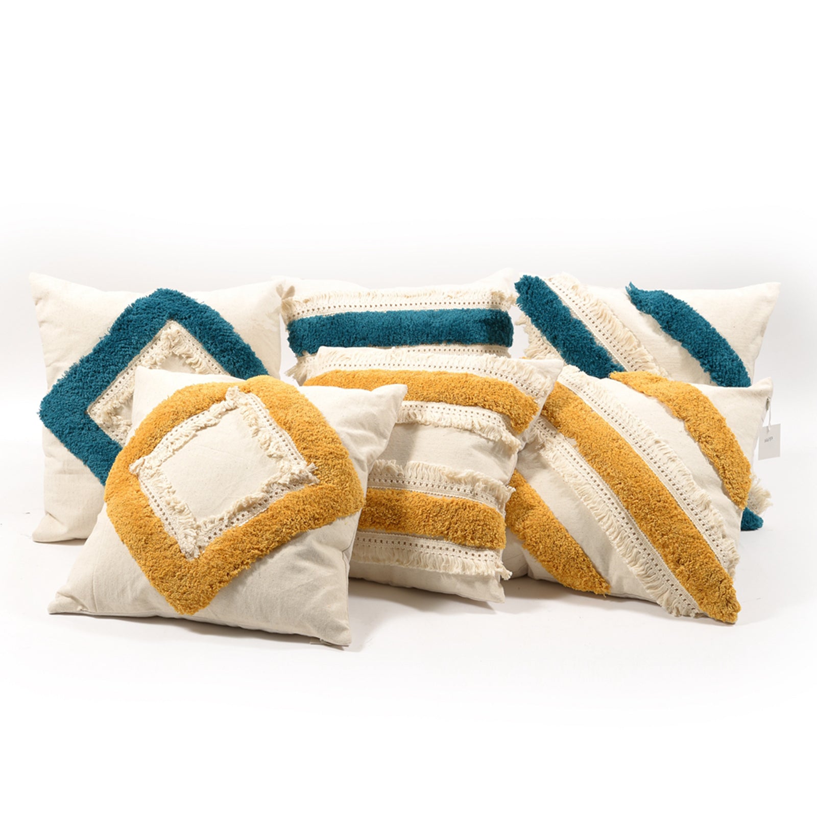 Cuscino imbottito della linea "Boho chic", con colori accesi e particolati. Il cuscino presenta diverse decorazioni e motivi con un imbottitura comoda in 100% poliestere.
