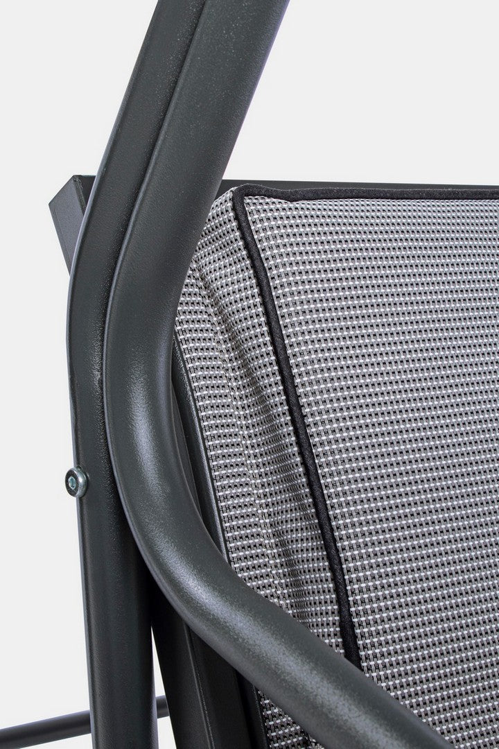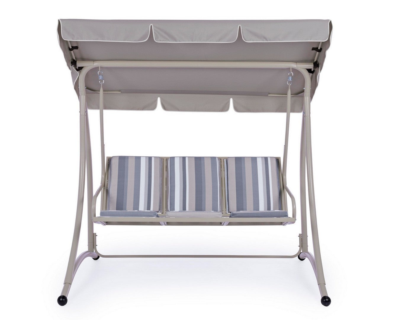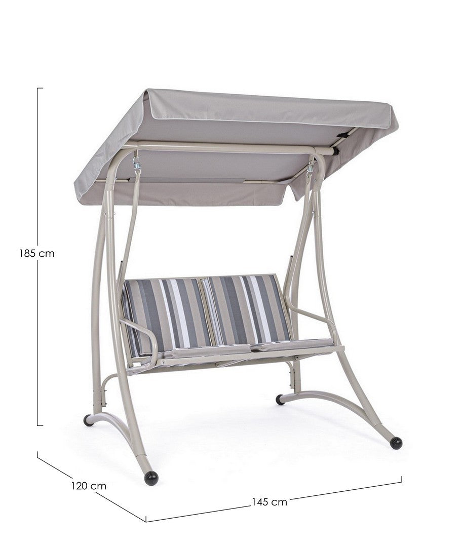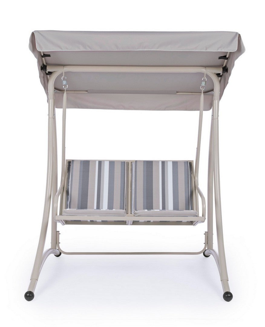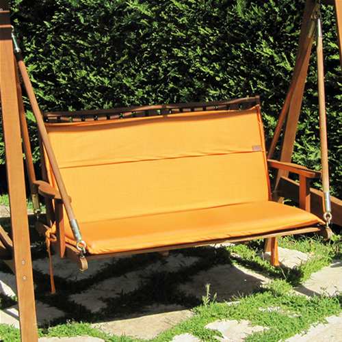 La realizzazione del cuscino è rifinita anche nei particolari ed è realizzato in due varianti colore che si abbinano alla perfezione al telo superiore del dondolo.