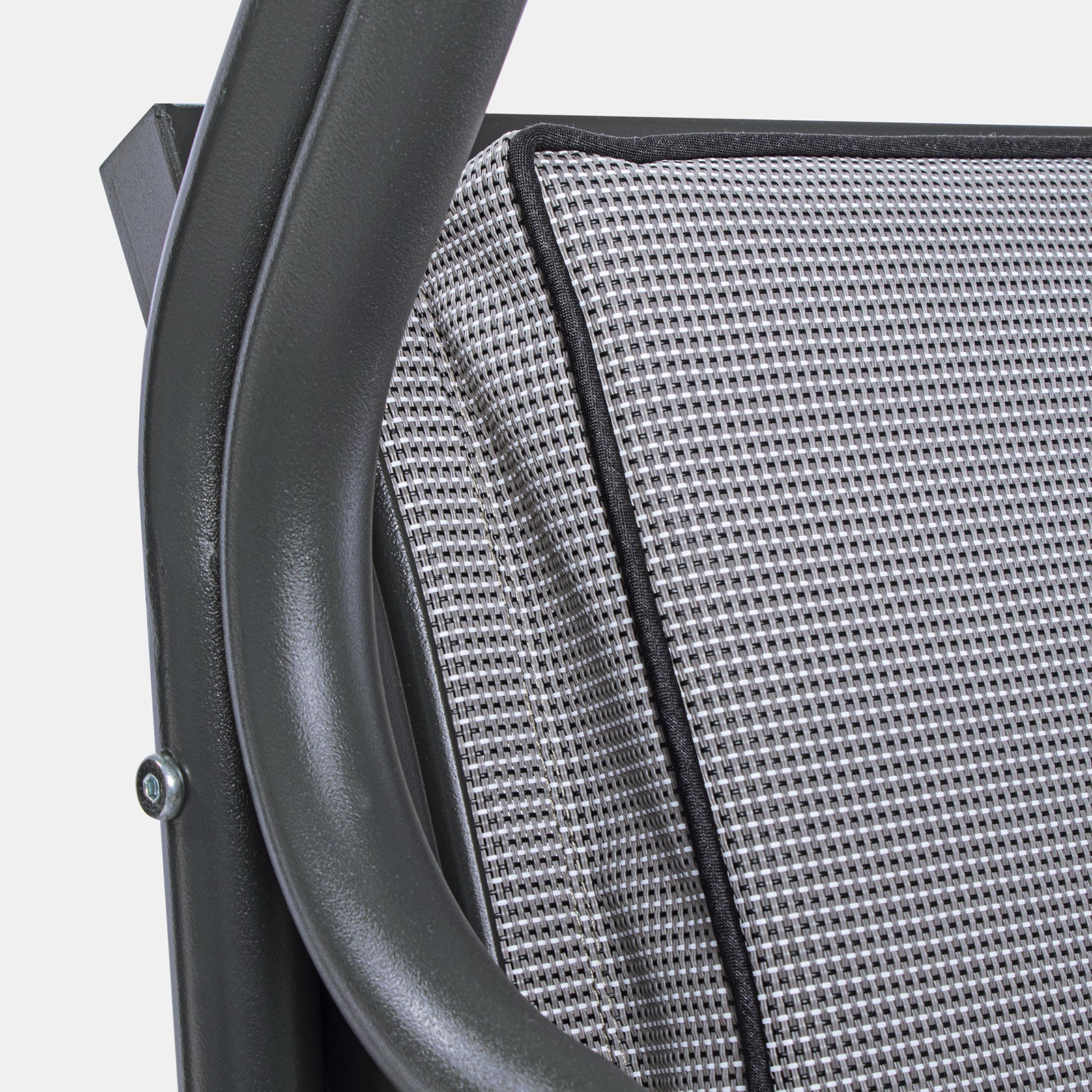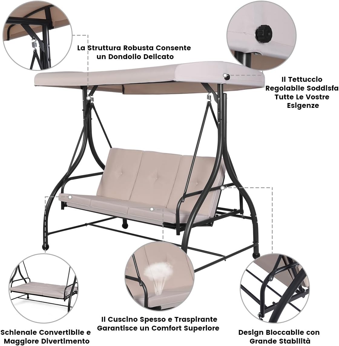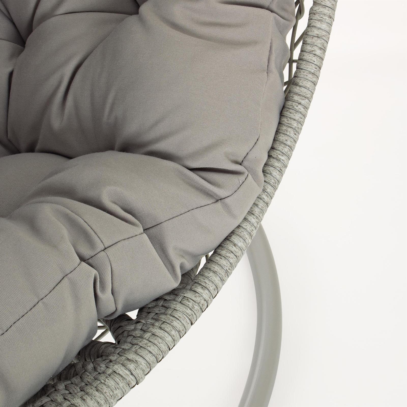 La realizzazione del cuscino è rifinita anche nei particolari ed è realizzato in due varianti colore che si abbinano alla perfezione al telo superiore del dondolo.