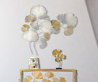 La composizione di fiori decorativi in ferro può essere pensata per essere appesa al muro come un quadro, posizionata su una mensola o un tavolo come elemento centrale, o addirittura come parte di una lampada o di una struttura più ampia.