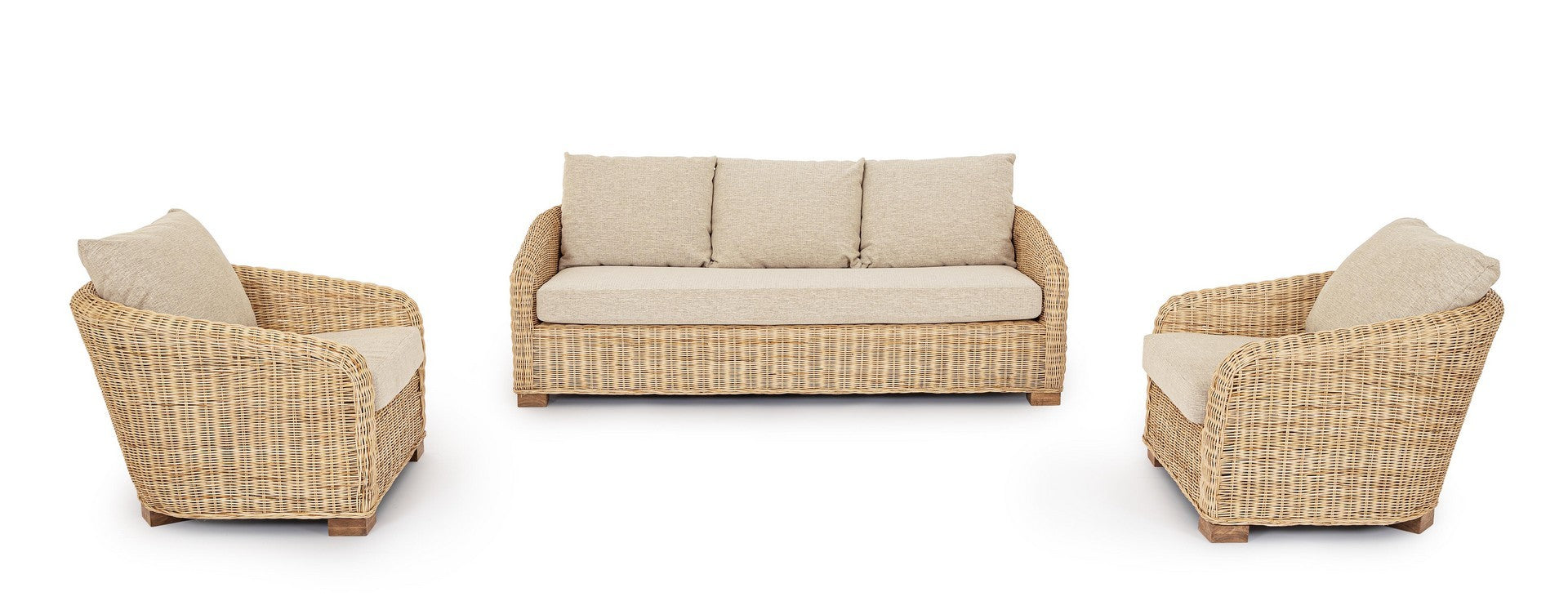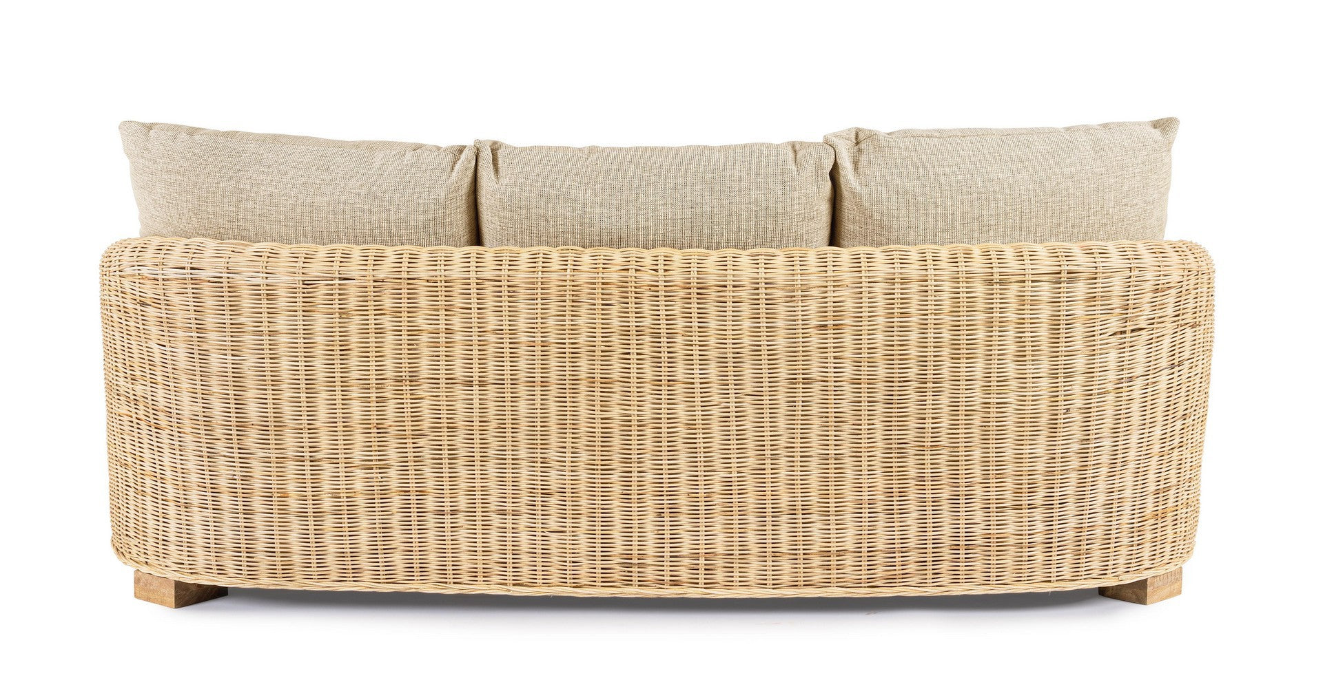 Il rattan, leggero ma resistente, dona stabilità al divano e ne facilita lo spostamento, oltre a richiamare uno stile naturale e rustico che si adatta perfettamente a interni dal carattere rilassato o bohemien.