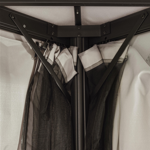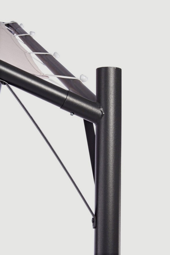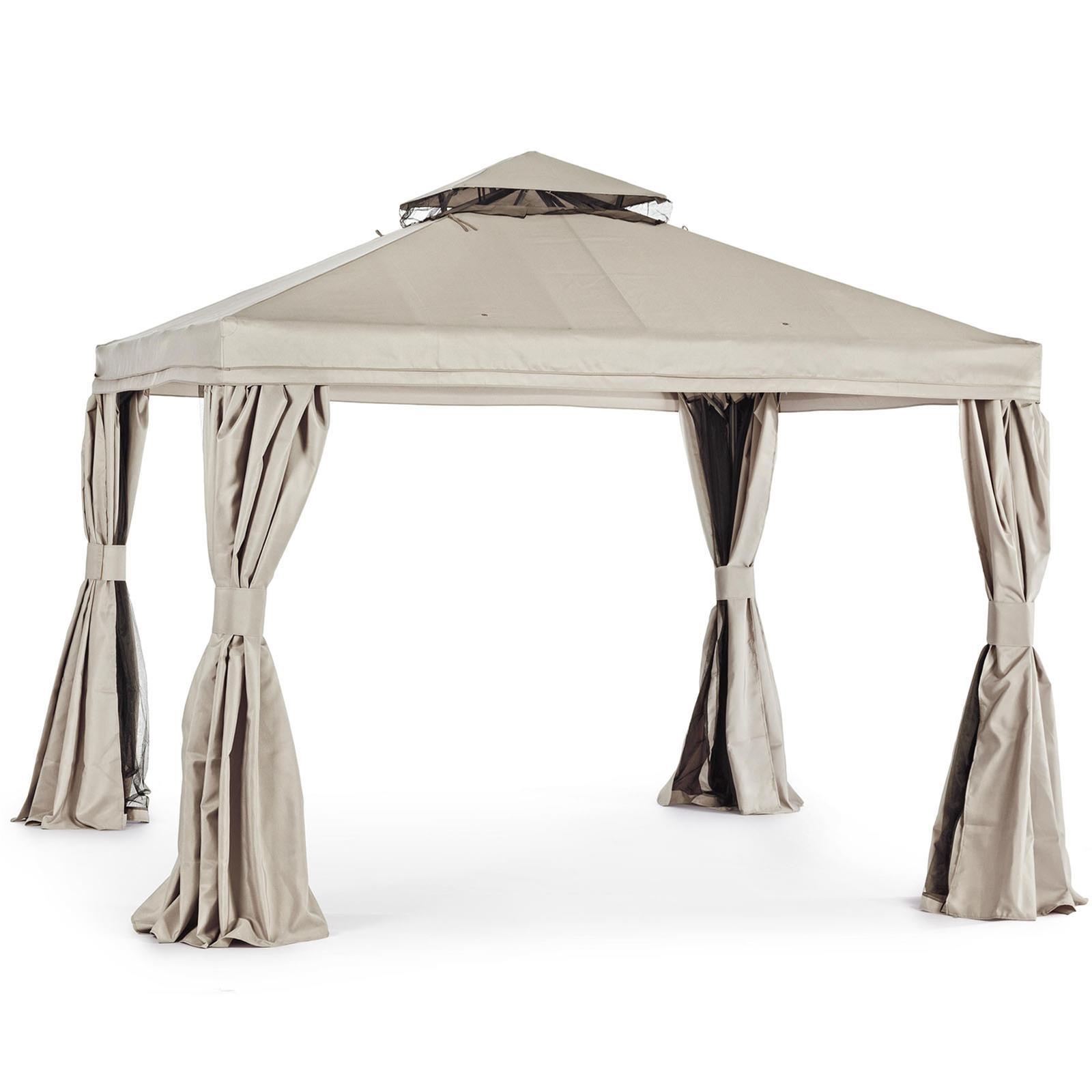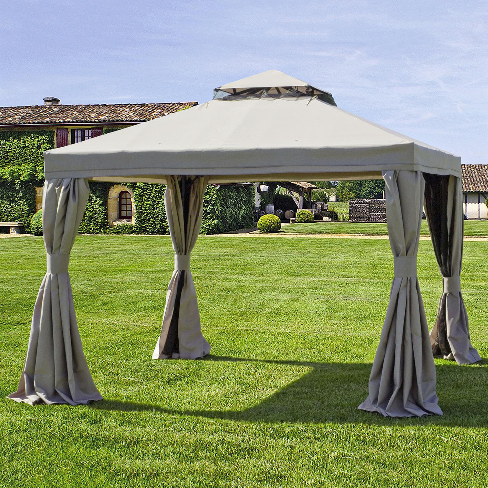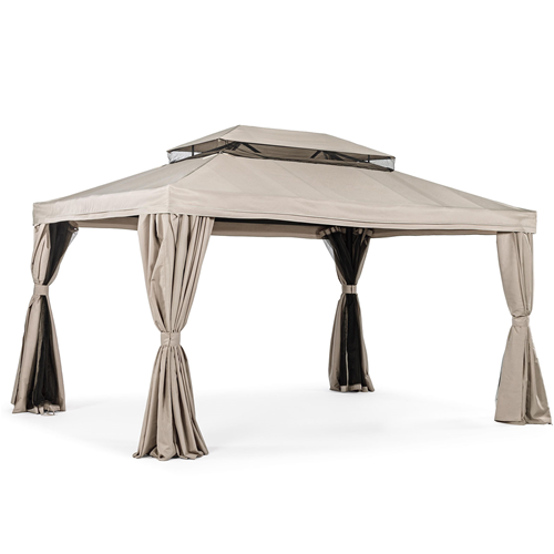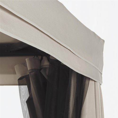 Il moderno ed elegante gazebo è realizzato con materiali resistenti e che non richiedono manutenzione come l'alluminio verniciato a polvere.