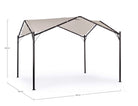 Il telo del gazebo è realizzato in poliestere con un peso di 180 grammi al metro quadrato. Il tessuto ha un colore antracite-grigio, che si abbina bene a diversi stili di arredamento esterno. Il telo fornisce una buona protezione solare e una leggera resistenza all'acqua, mantenendo un ambiente confortevole all'interno del gazebo. Tuttavia, si consiglia di evitare l'esposizione prolungata a forti piogge o condizioni meteorologiche avverse.