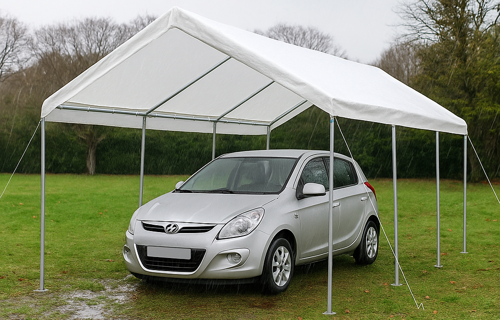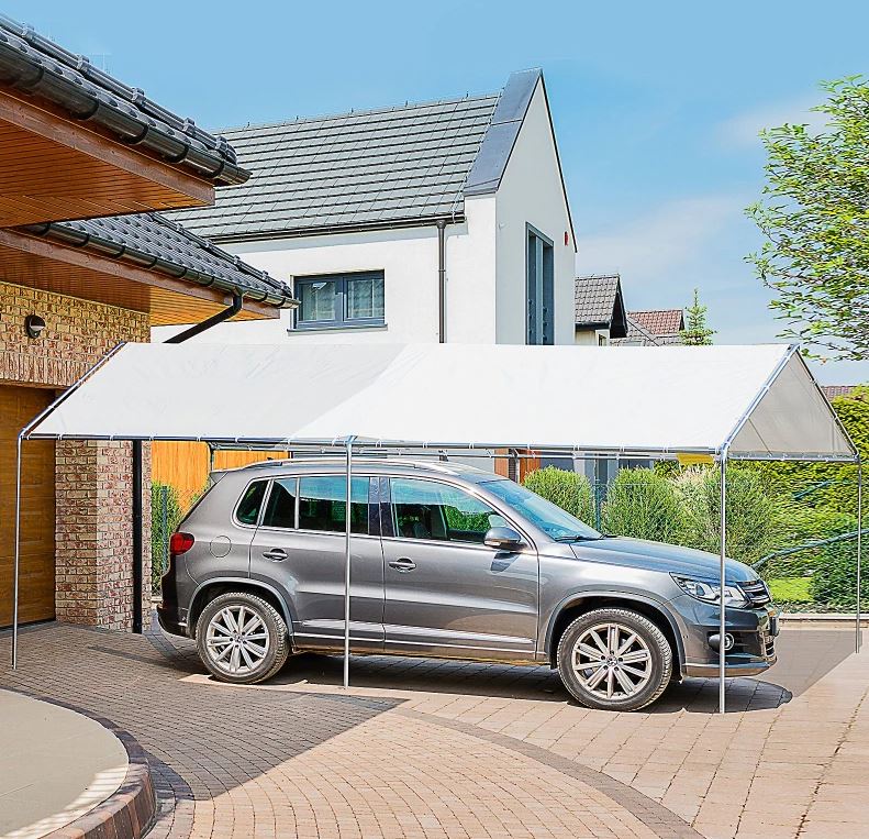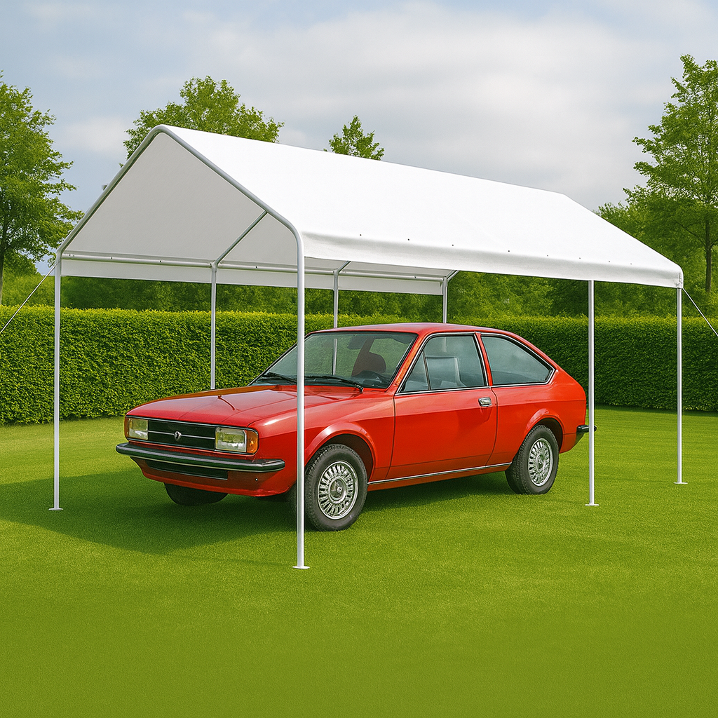 La nostra tenda garage misura 6 x 6 mt e offre un'ampia copertura per proteggere il tuo veicolo da pioggia, sporco ecc.