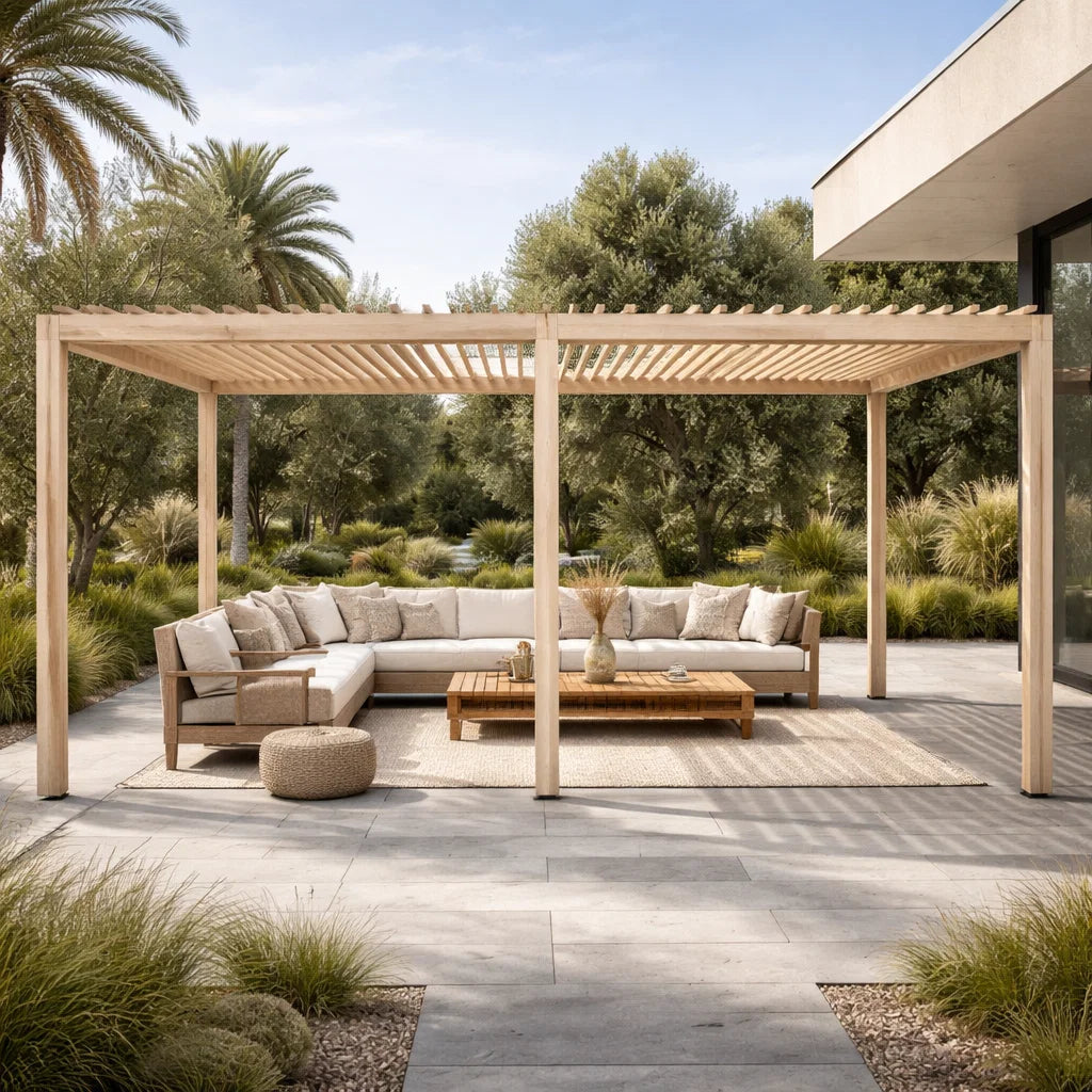 La pergola Ocean color natural/seta è la soluzione ideale per trasformare il tuo spazio esterno in un ambiente elegante, protetto e altamente funzionale.