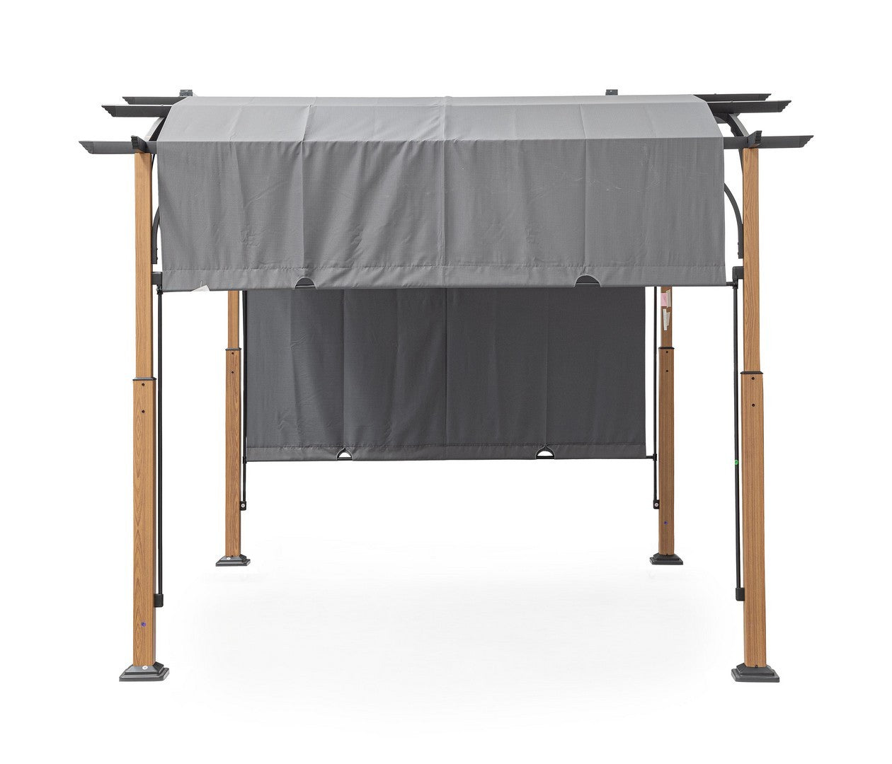 La finitura color antracite conferisce al telo un aspetto moderno e elegante, facilmente integrabile in diversi contesti esterni, sia residenziali che commerciali.