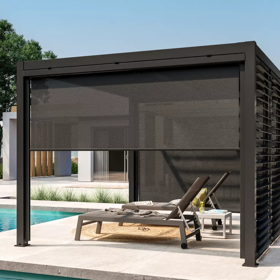 Si tratta di una tenda a rullo che può essere facilmente installata su una pergola bioclimatica o su un'area esterna come un terrazzo o un balcone.