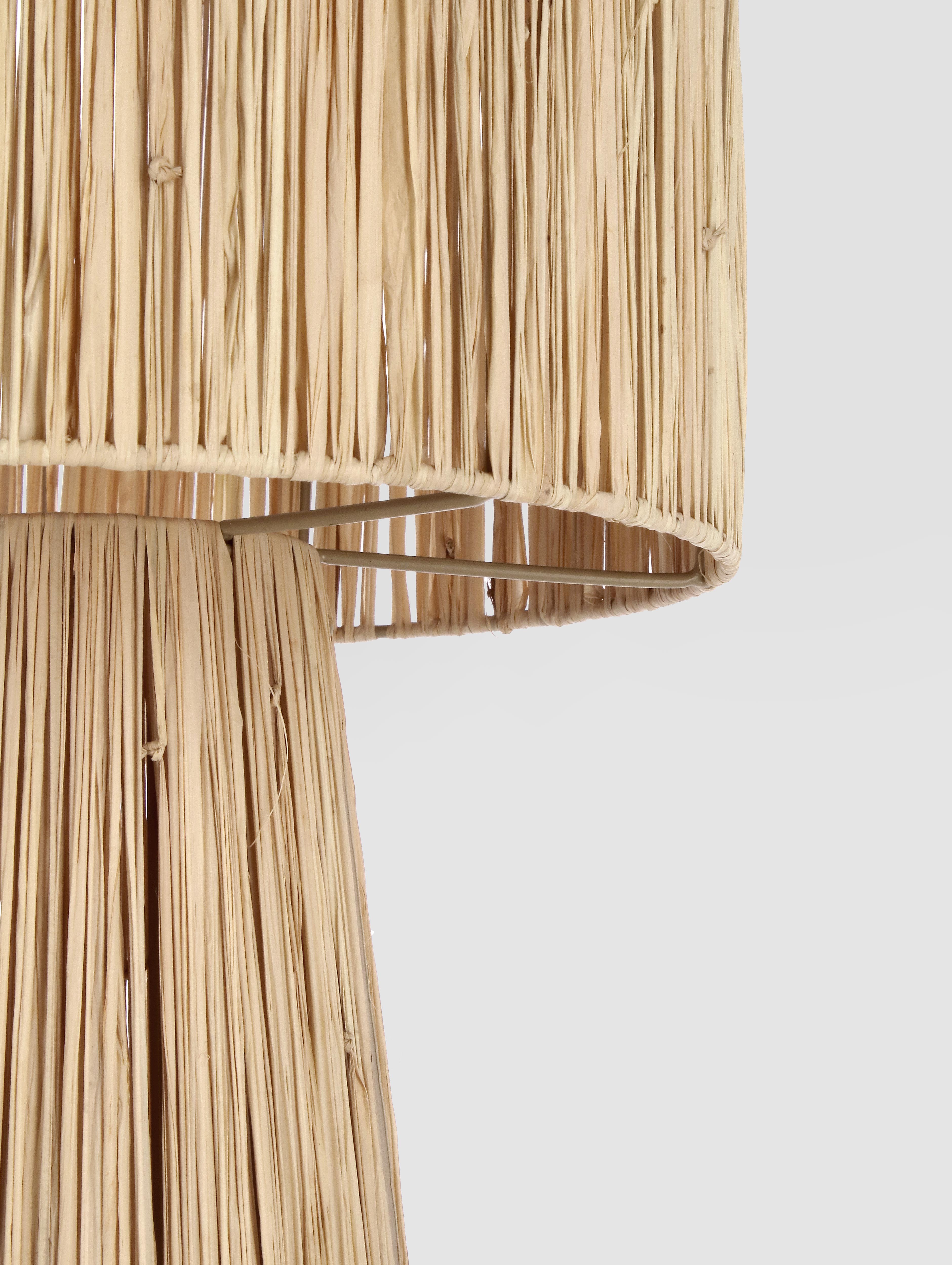 Il paralume, pensato per lampadari, è realizzato con cura utilizzando giacinto d'acqua e metallo. Questa scelta di materiali conferisce alla lampada una texture naturale e moderna allo stesso tempo.